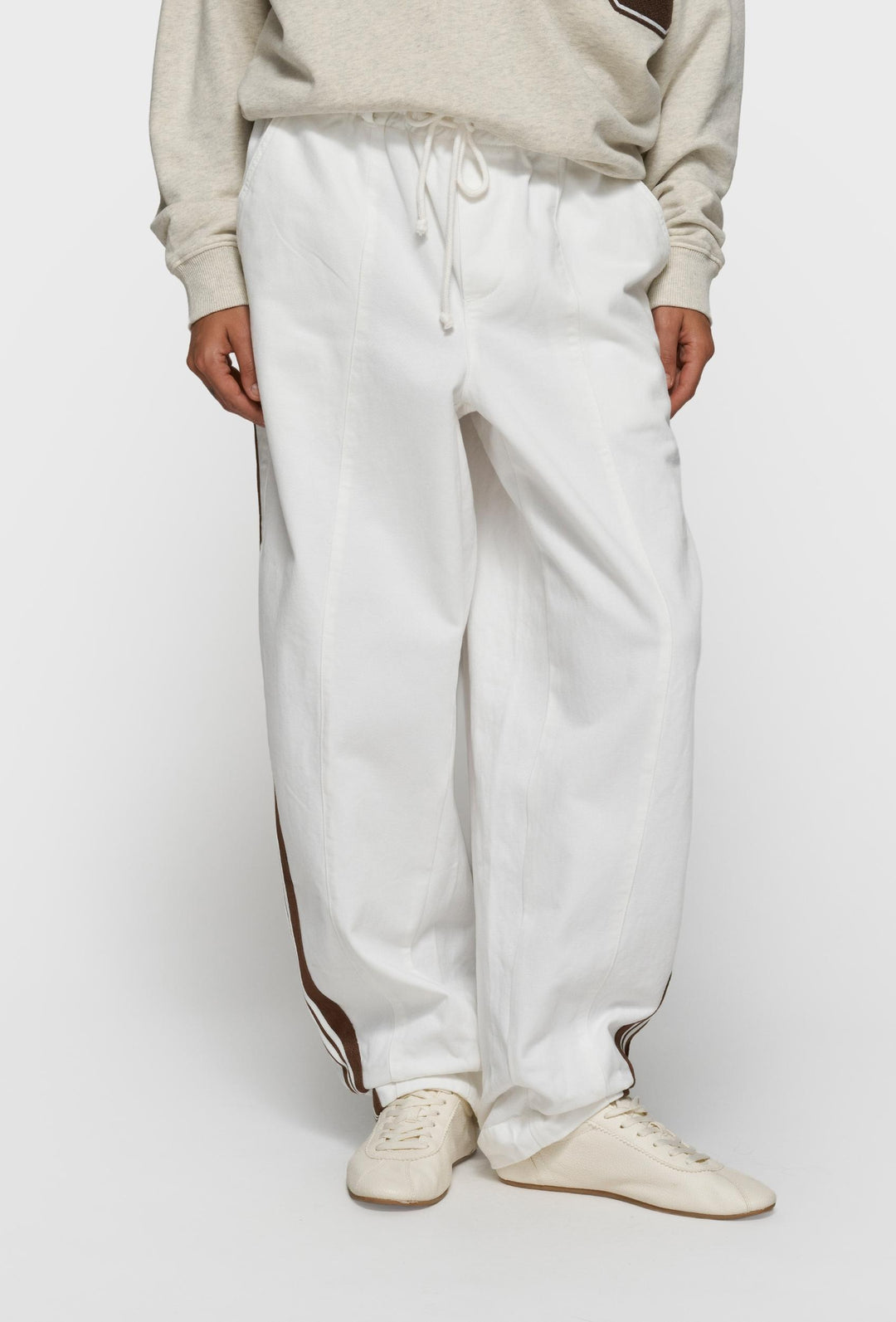 Białe spodnie dresowe z lampasami i elastycznym pasem