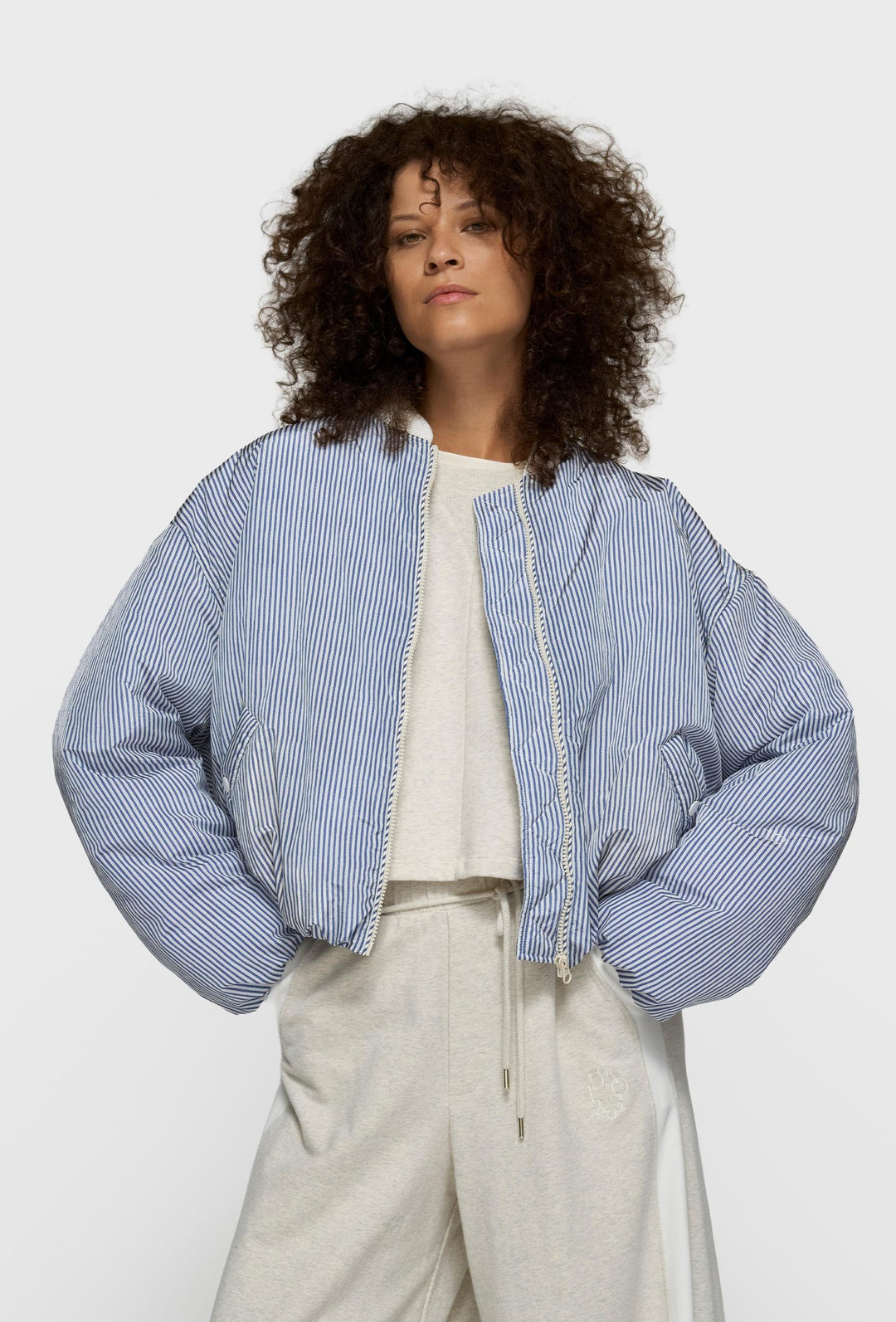 Niebiesko-białe spodnie jeansowe w pionowy pasek