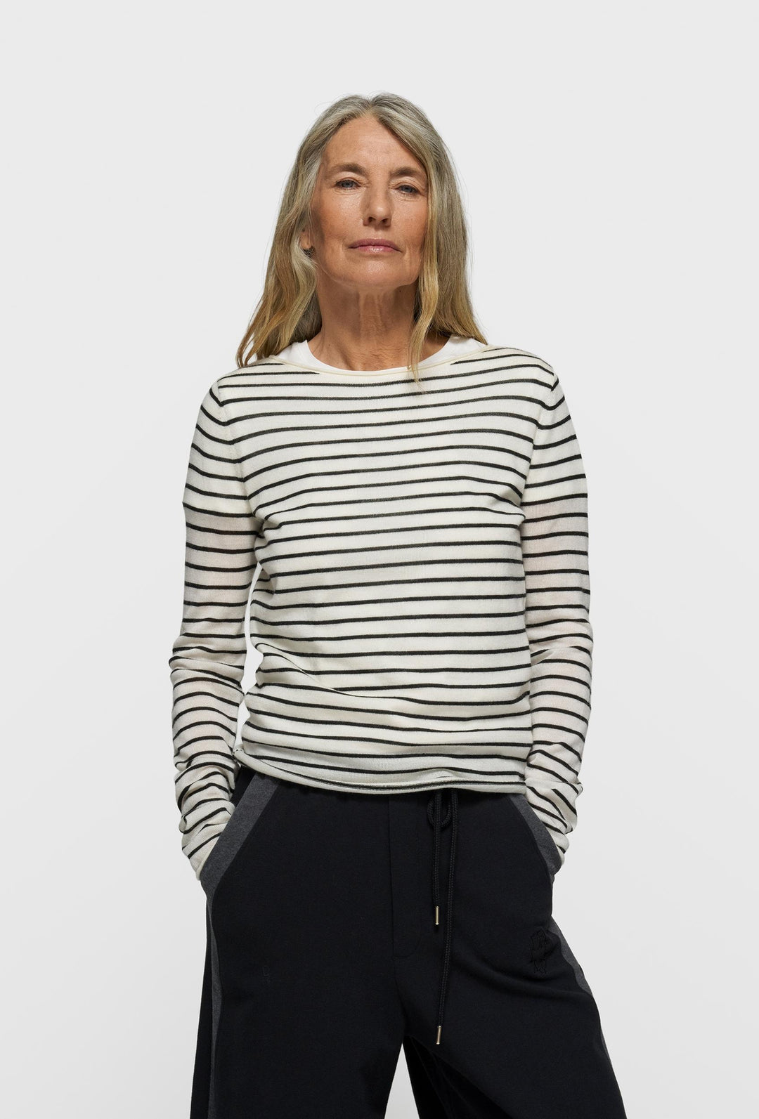 Kremowa bluzka w pionowy prążek z bufowanymi rękawami