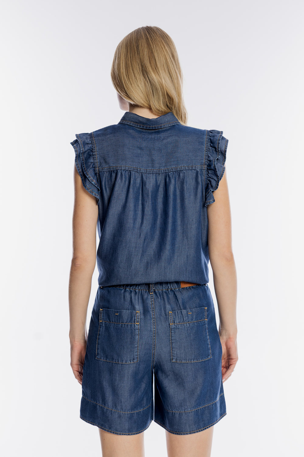 Jeansowa bluzka damska Campione z ozdobnymi falbanami