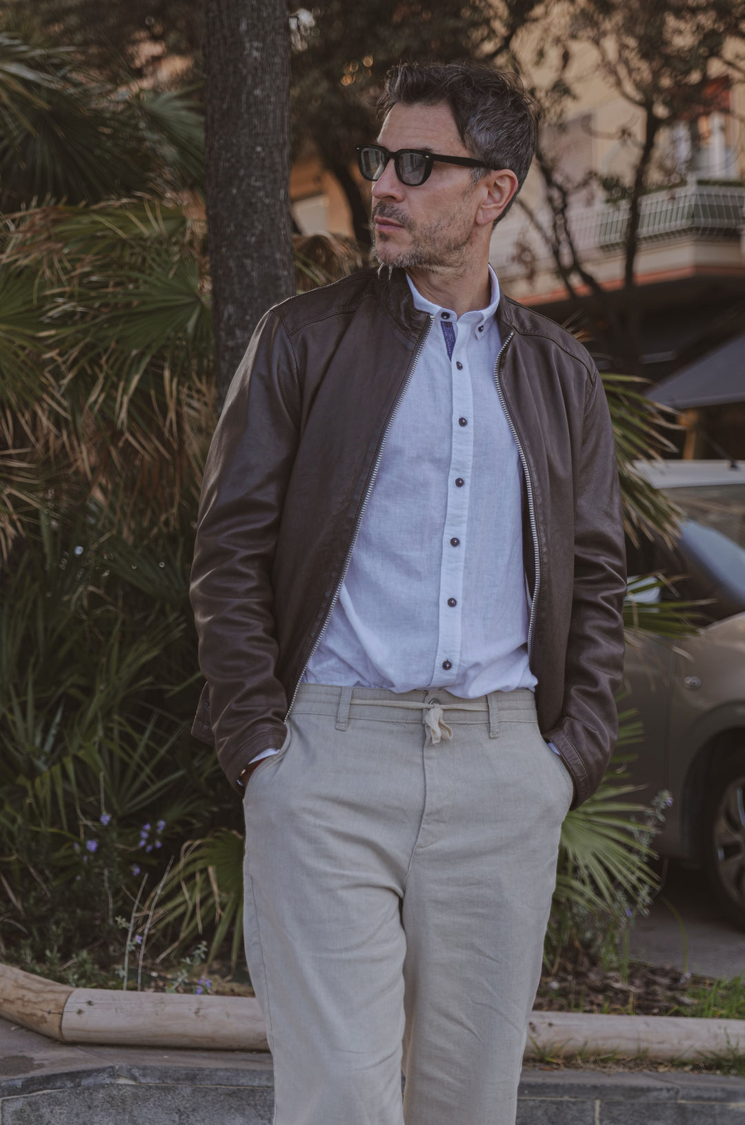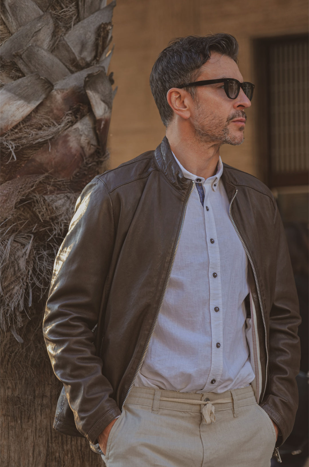 Brązowa kurtka skórzana