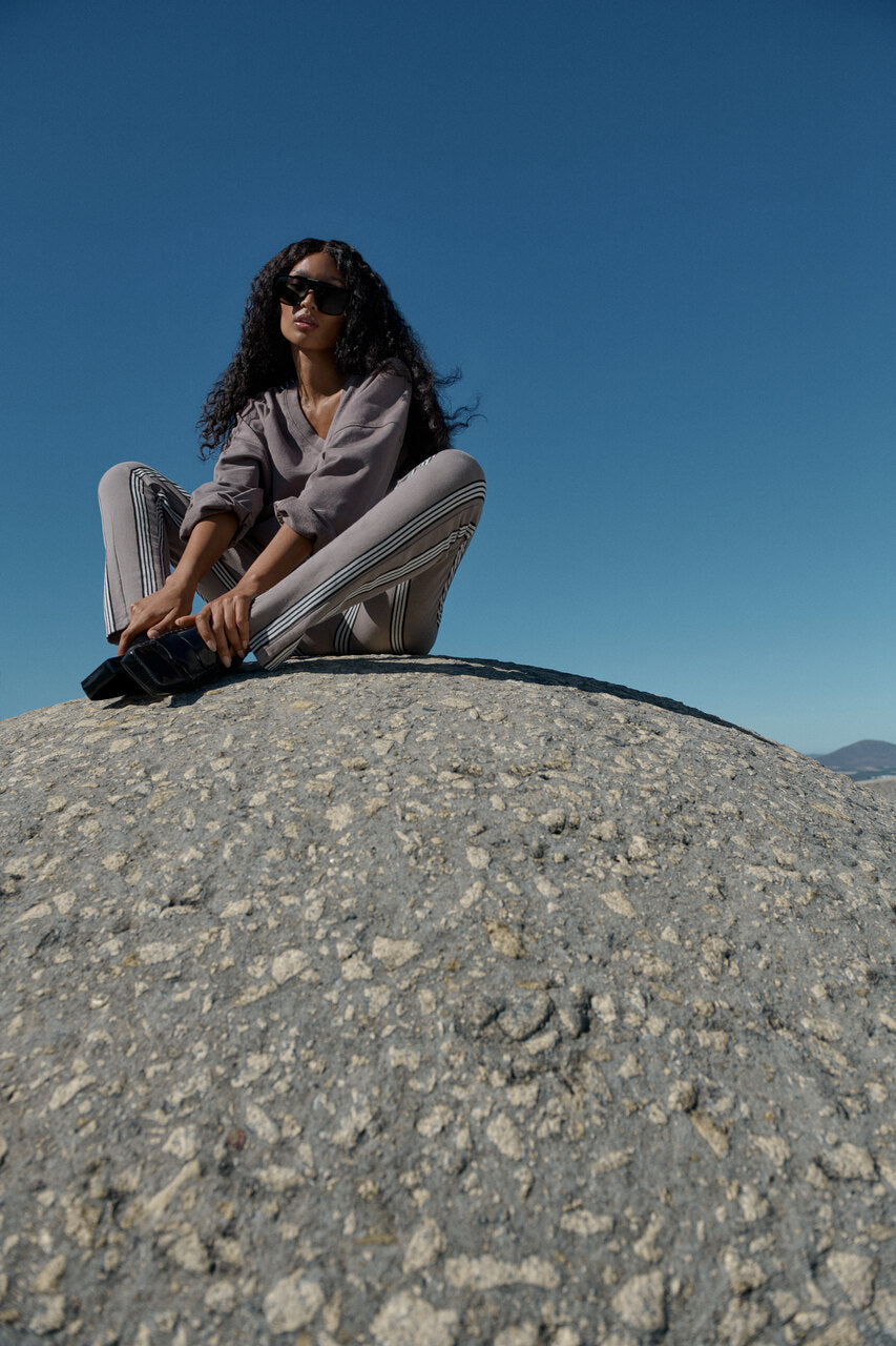 W kolekcji pojawia się również sportowy stanik wpisujący się w nowoczesny, aktywny styl życia. Wszystkie dodatki zostały zaprojektowane tak, aby harmonijnie współgrały z ubraniami i subtelnie dopełniały stylizacje. To właśnie detale podkreślają charakter minimalistycznej mody premium i sprawiają, że nawet proste zestawy nabierają wyjątkowego stylu.