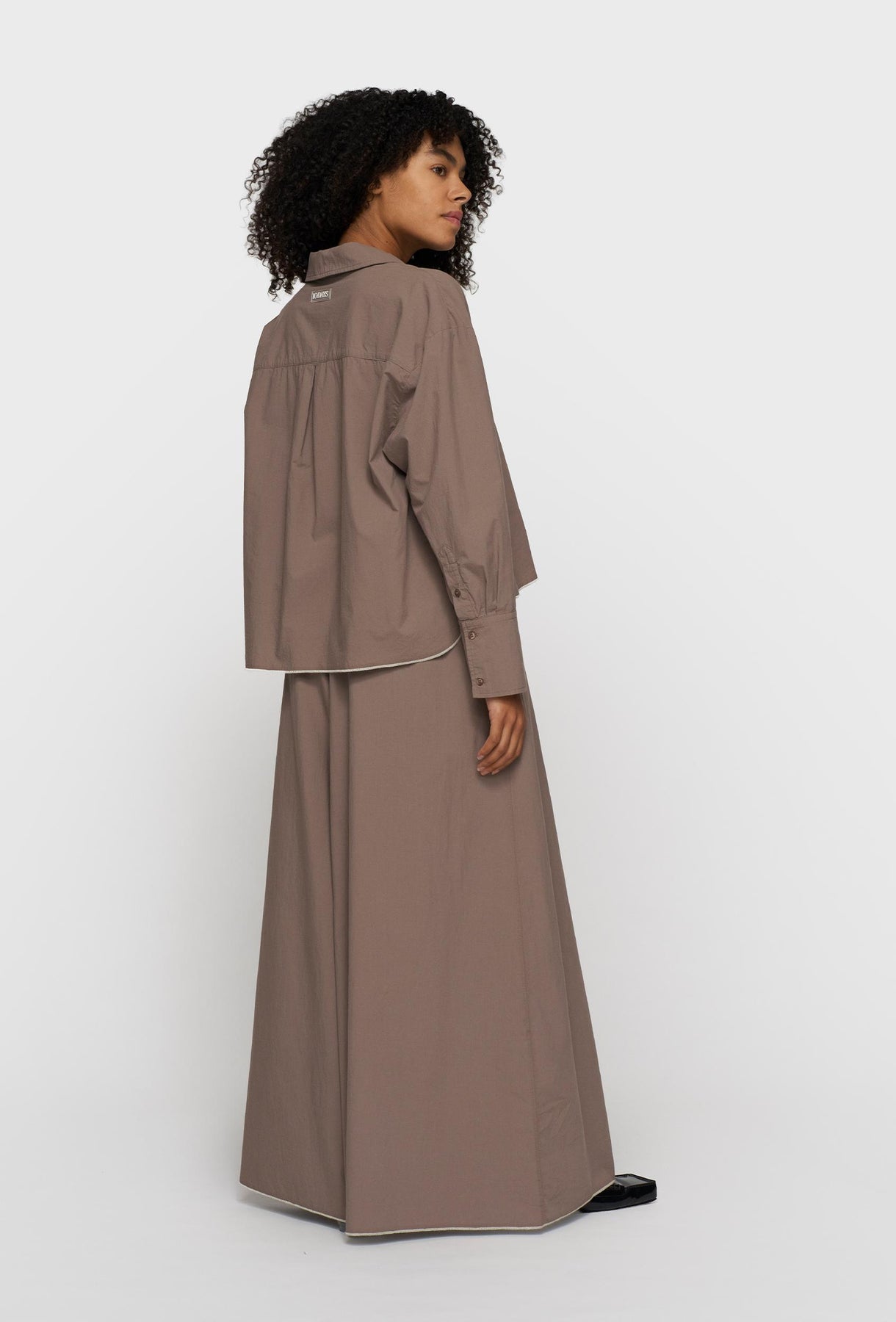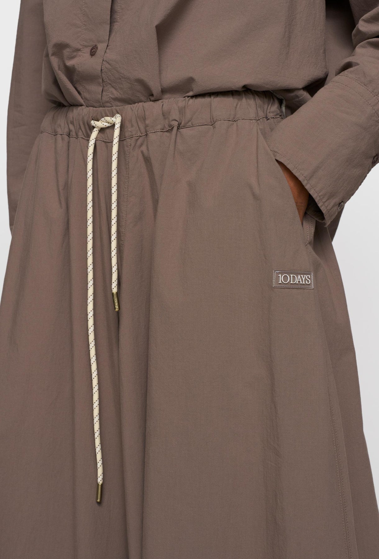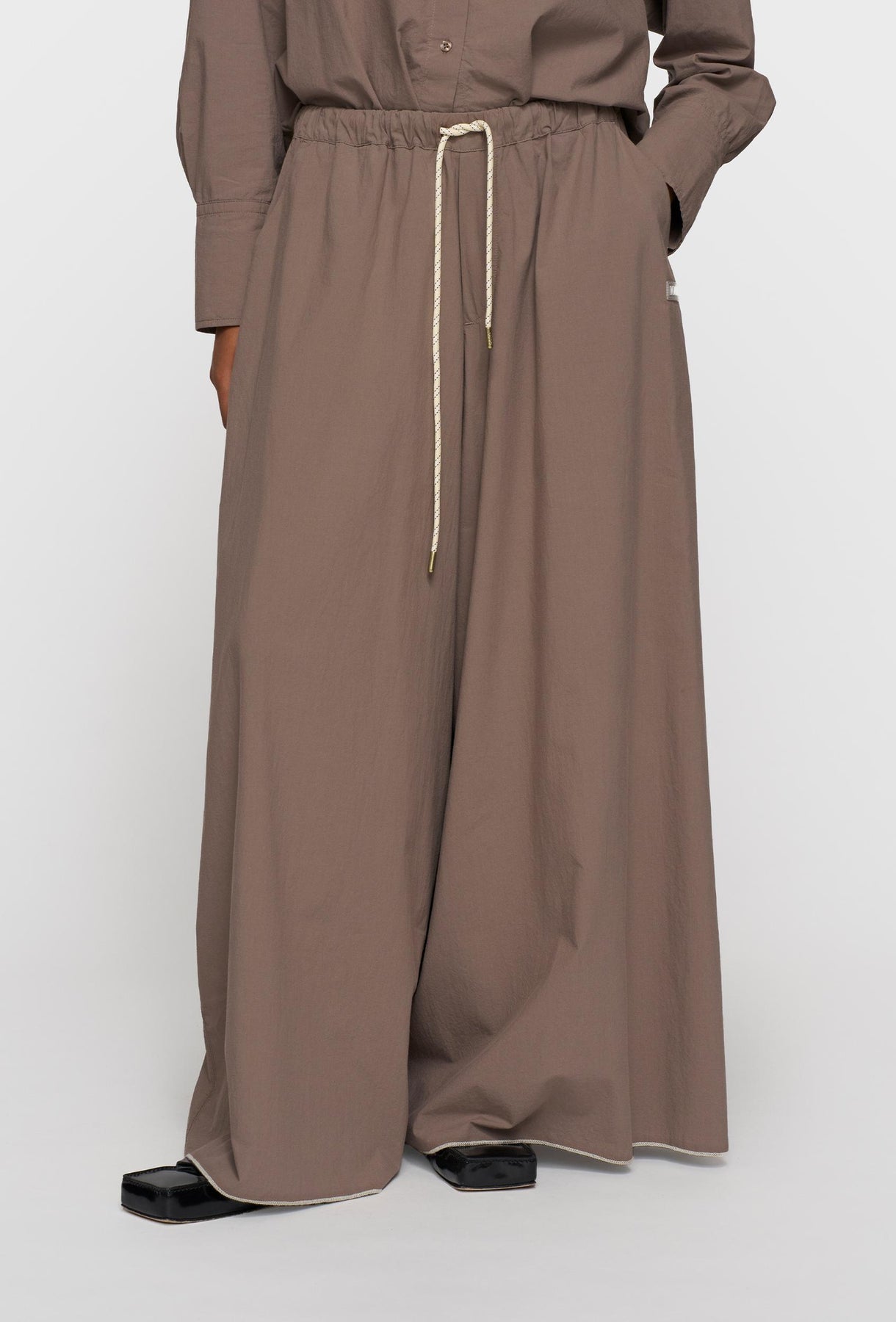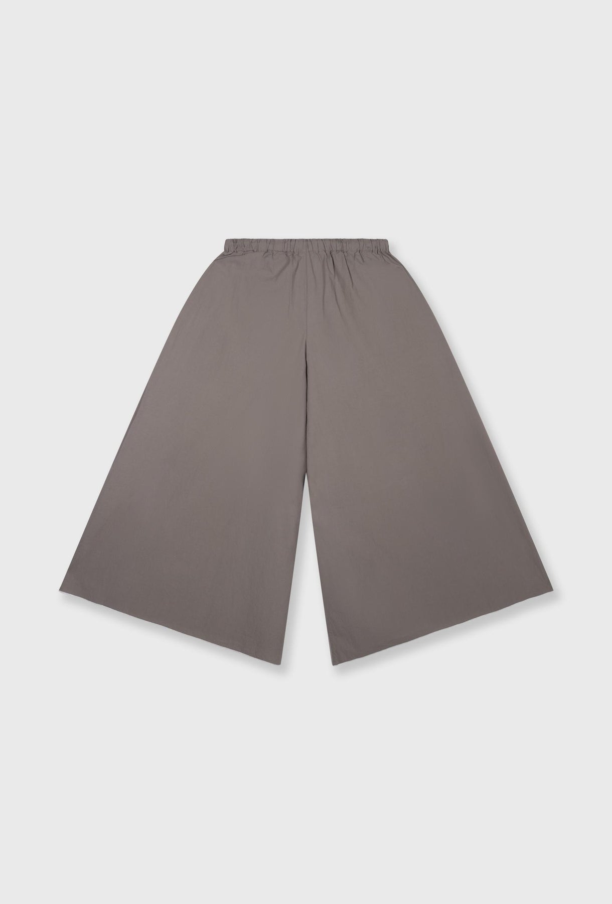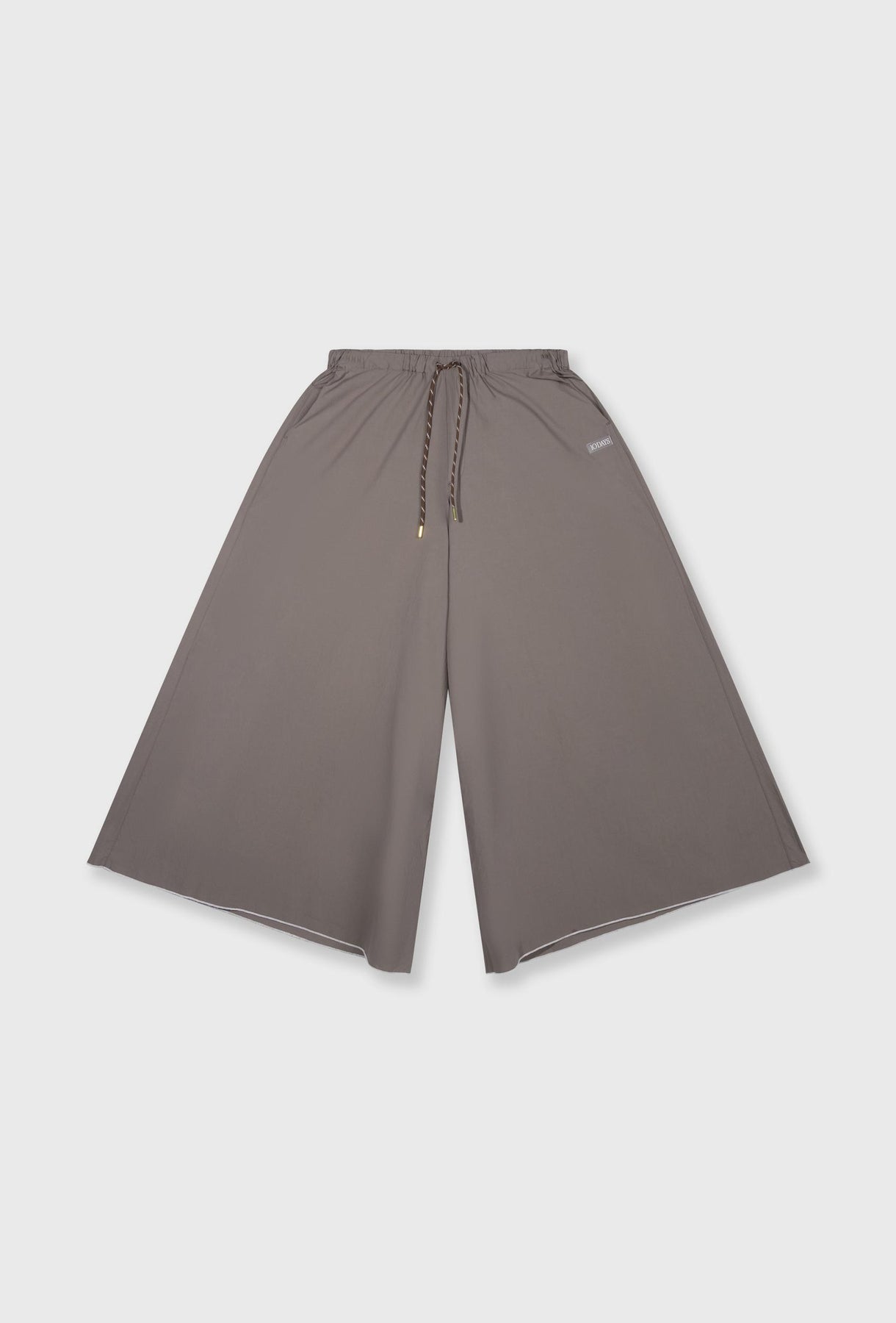 Zwiewne spodnie typu culotte w eleganckim odcieniu taupe to idealne połączenie minimalizmu i codziennej wygody. Wykonane z lekkiego, oddychającego materiału, doskonale sprawdzą się w cieplejsze dni, zapewniając komfort noszenia przez cały dzień. Szerokie nogawki nadają sylwetce lekkości i swobody, a elastyczny pas z regulacją na sznurek umożliwia idealne dopasowanie do figury. Prosty, ponadczasowy krój sprawia, że model łatwo dopasować do różnych stylizacji – od casualowych po bardziej eleganckie. To uniwersalny element garderoby, który świetnie komponuje się zarówno z basicowym topem, jak i koszulą czy lekką marynarką, tworząc nowoczesny i wygodny look na każdą okazję.
