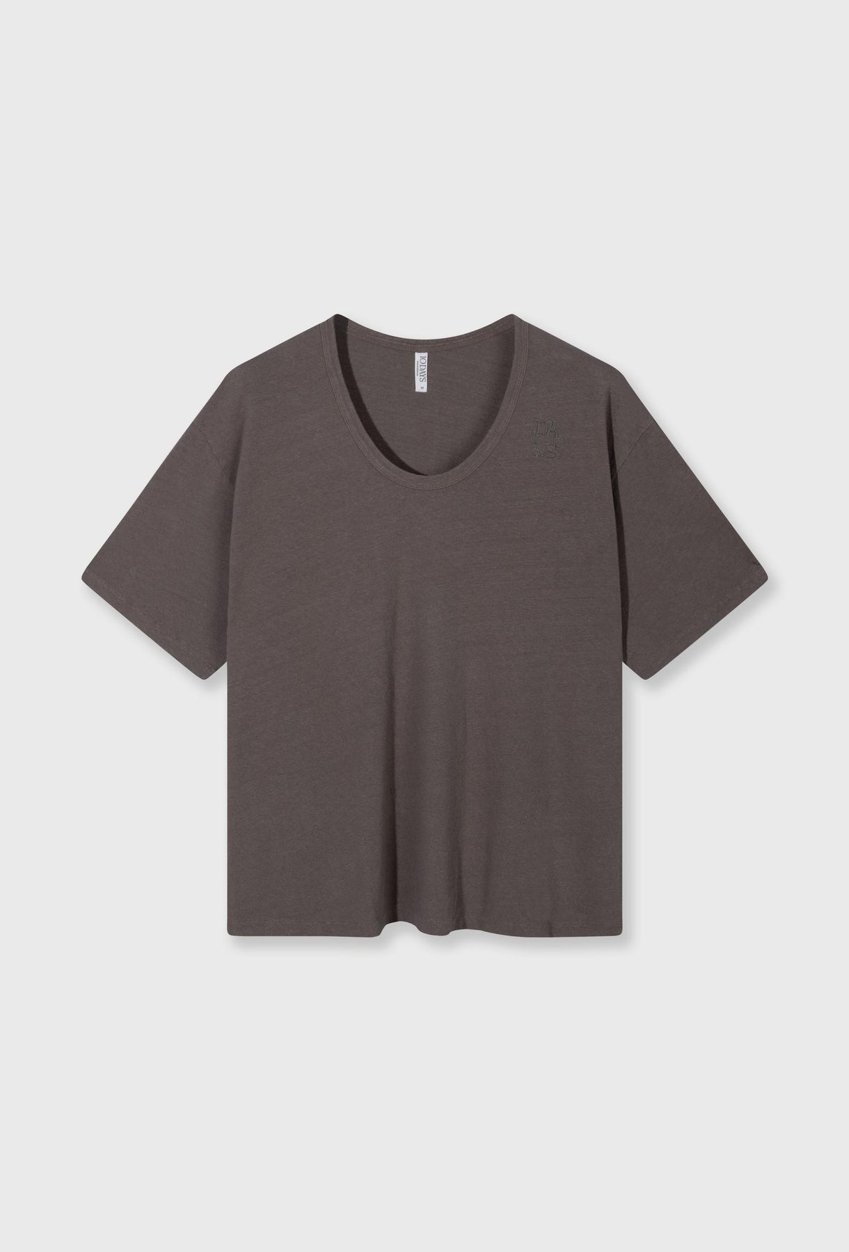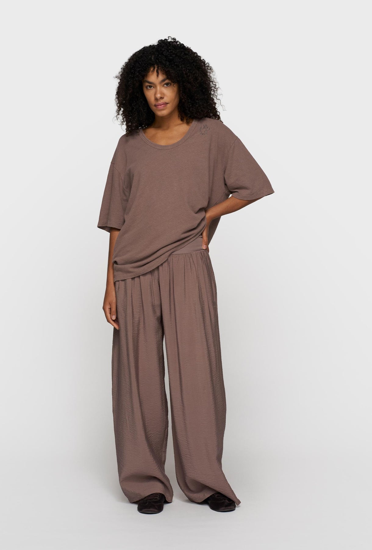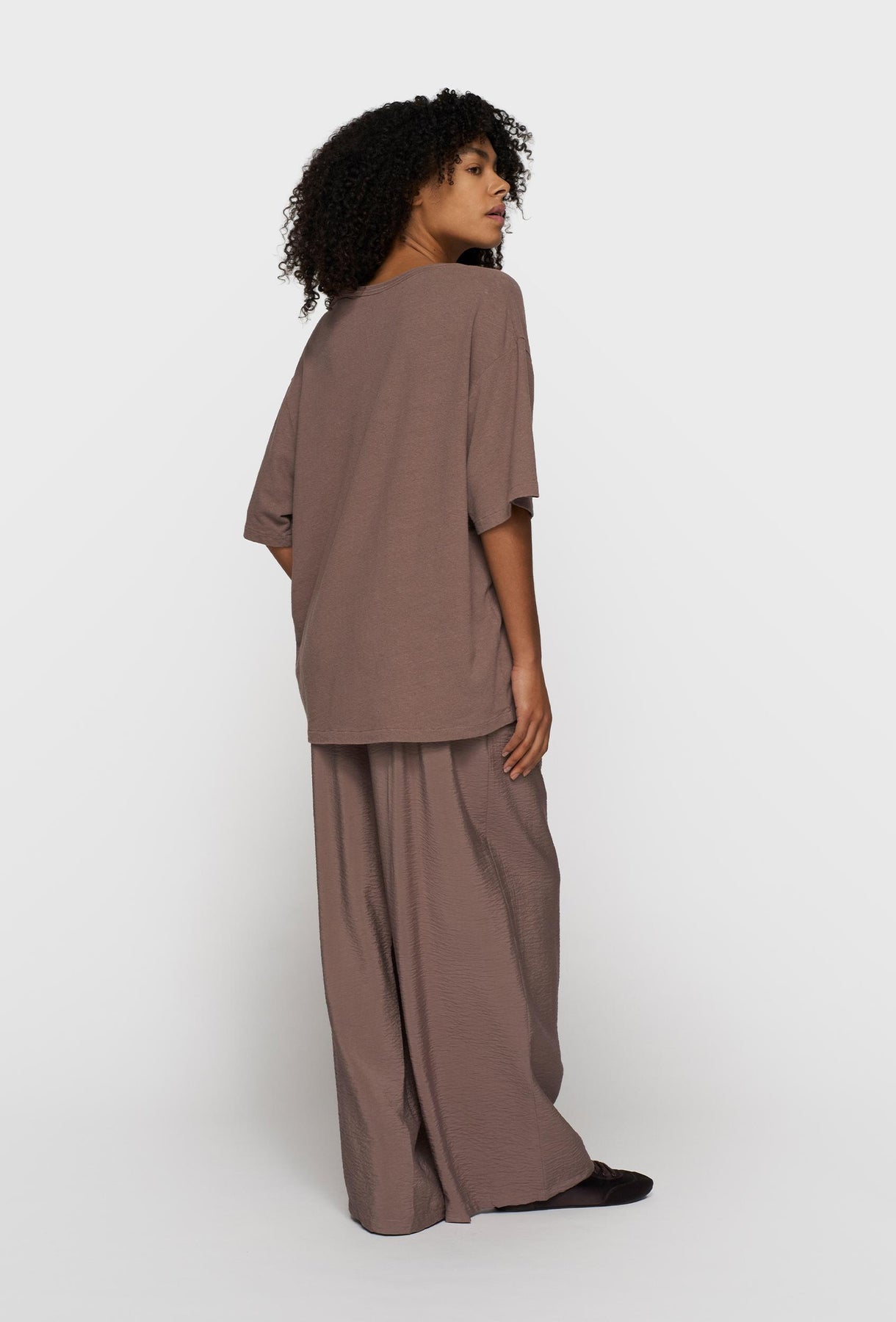 Luźny t-shirt z orągłym dekoltem w kolorze taupe