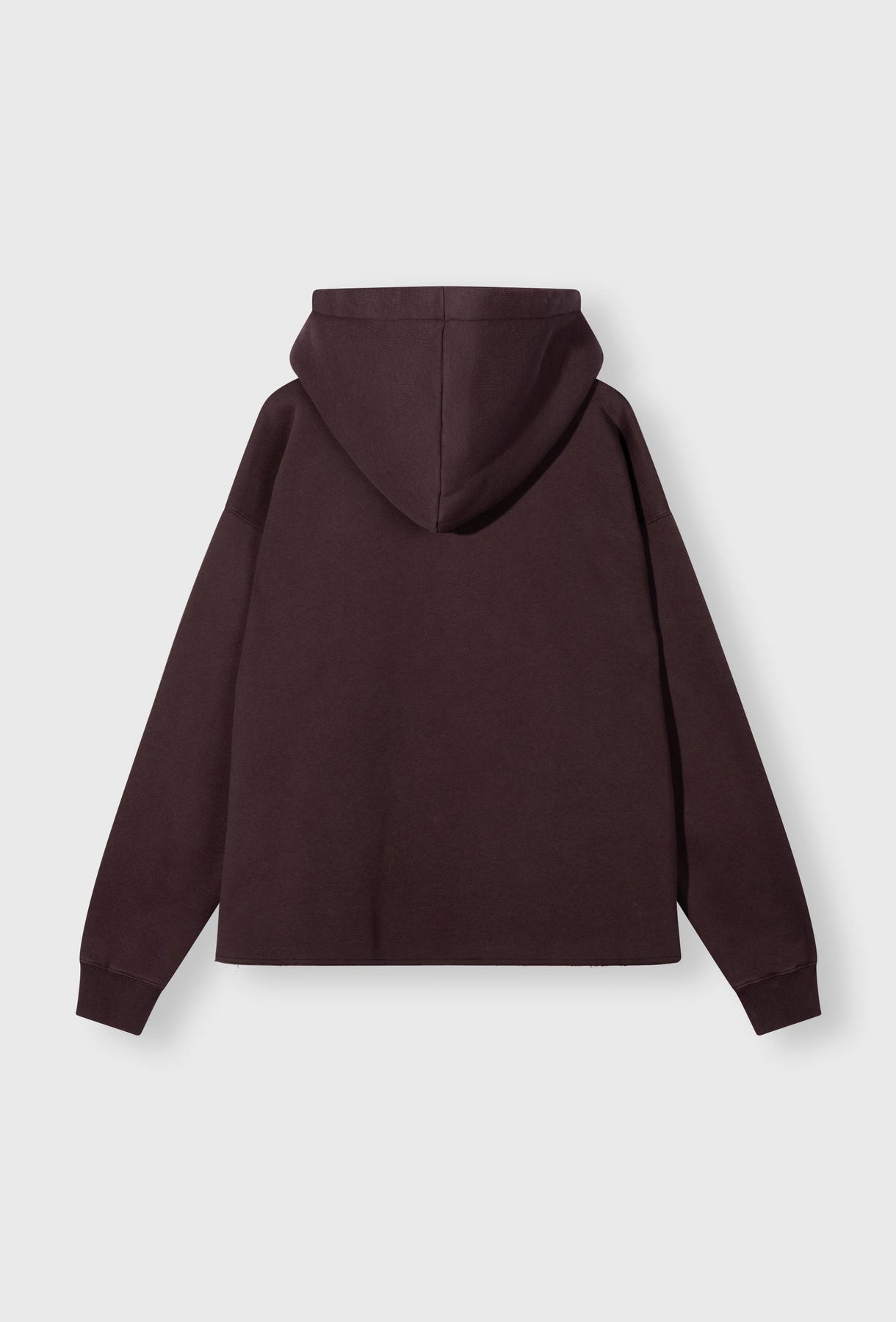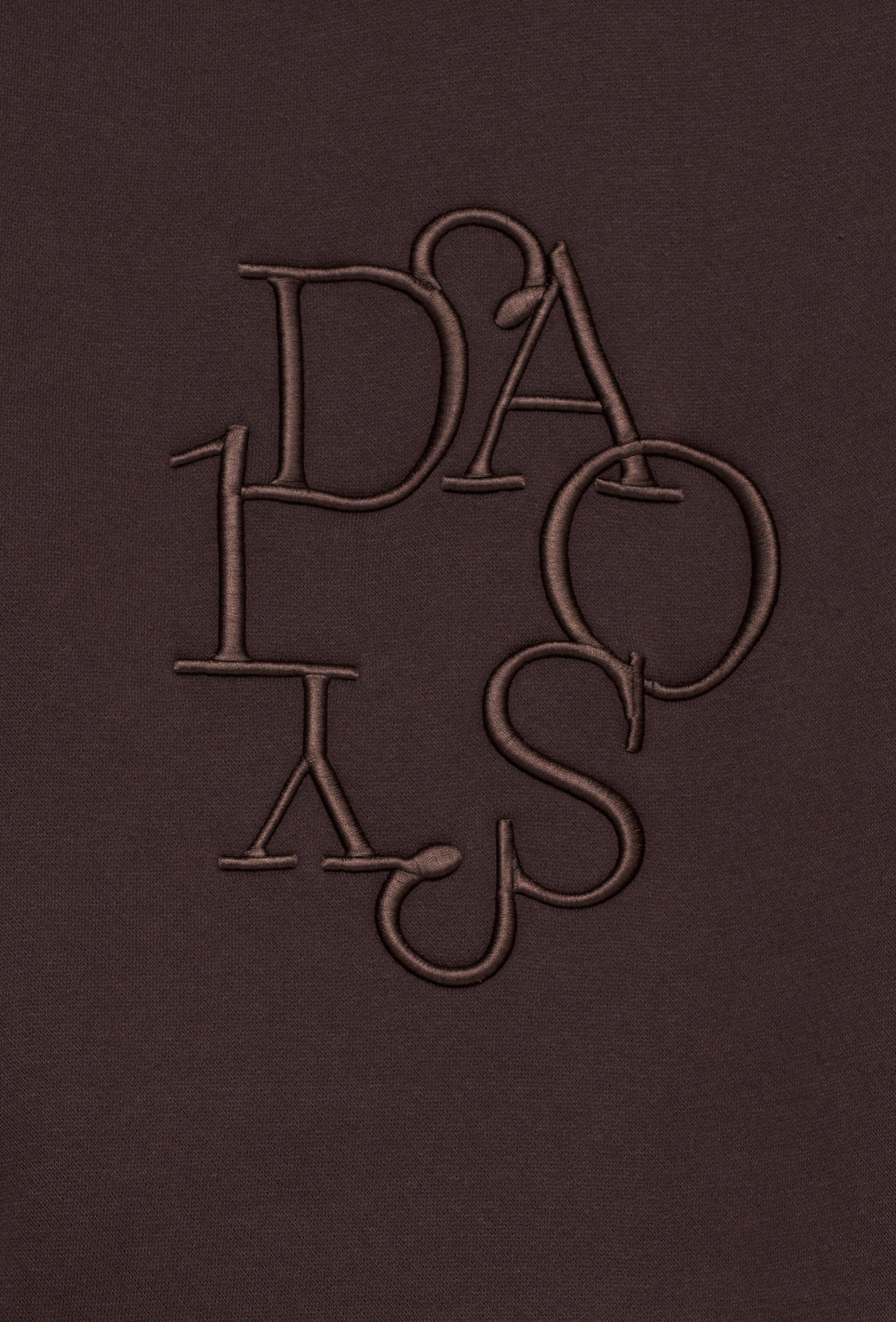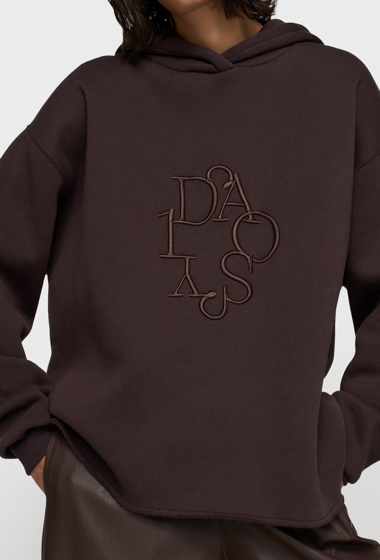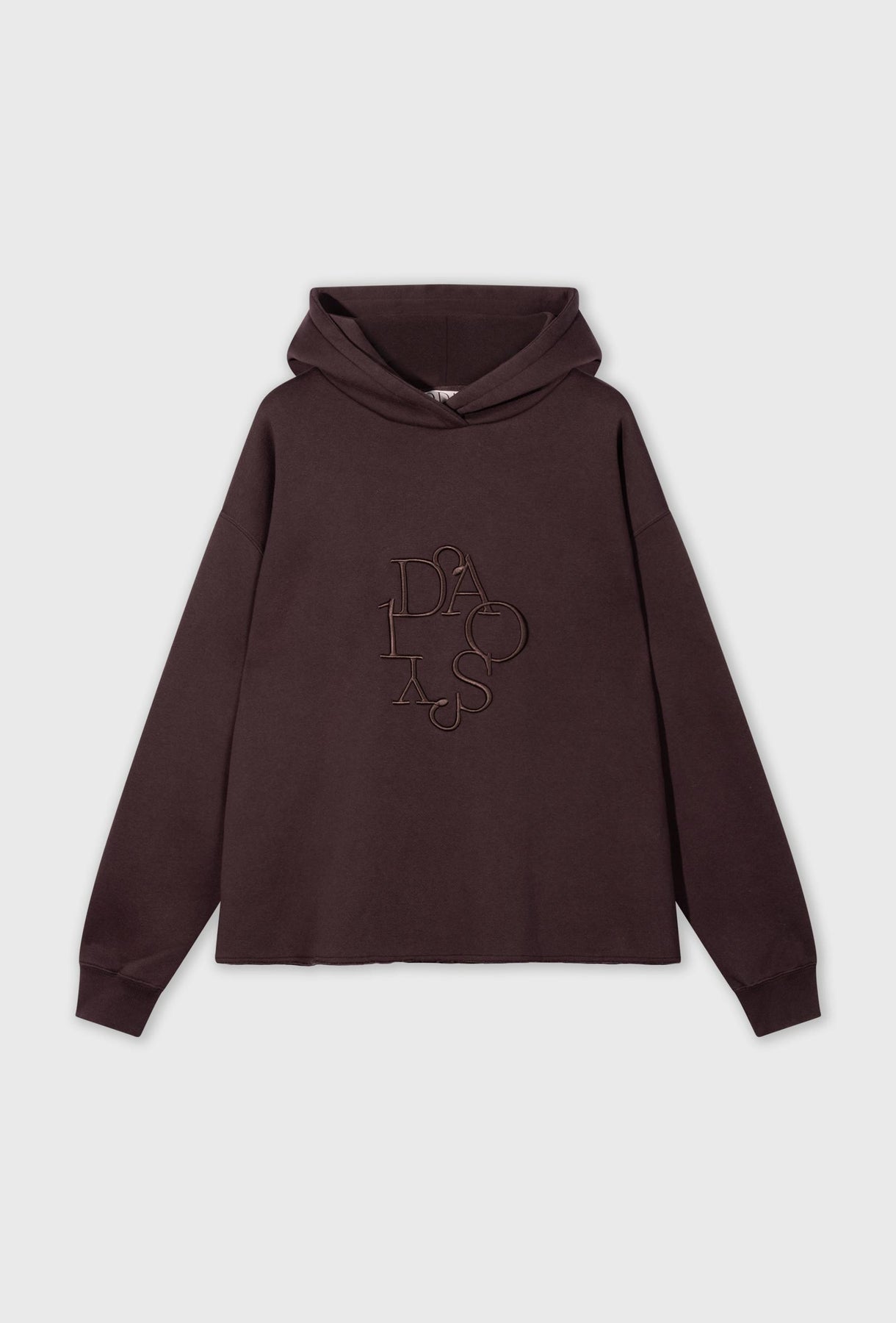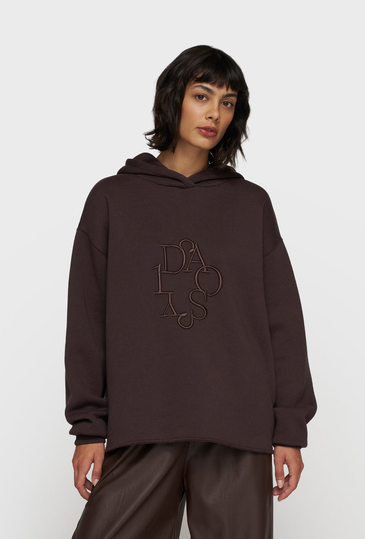 Czekoladowa bluza z kapturem z luźnym krojem i tonalnym haftem