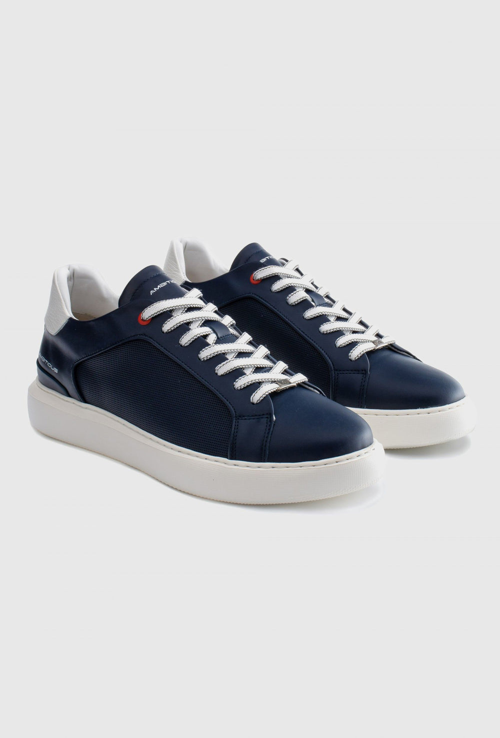 Granatowe skórzane sneakersy męskie z kontrastową białą podeszwą