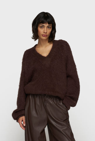 Puchaty oversizowy sweter z głębokim dekoltem w kształcie litery V