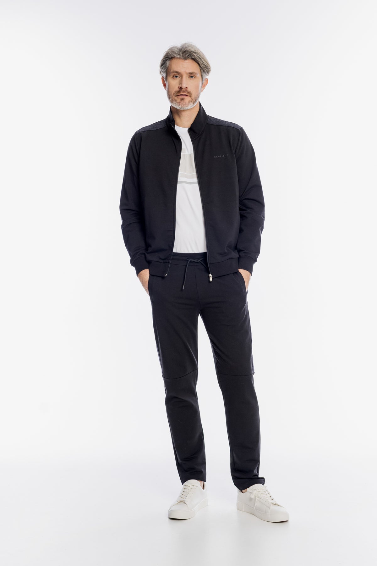 Męska rozpinana bluza marki Campione w kolorze czarnym to synonim sportowej elegancji i wygody. Model charakteryzuje się nowoczesnym designem z subtelnymi wstawkami o strukturze żakardowej na ramionach oraz bokach, które nadają jej unikatowego wyglądu. Bluza posiada wysoką stójkę chroniącą przed chłodem, dwie praktyczne kieszenie boczne oraz elastyczne ściągacze przy rękawach i na dole, zapewniające idealne dopasowanie. Na piersi umieszczono dyskretny, wypukły napis z nazwą marki. Wykonana z wysokiej jakości, gładkiego materiału, doskonale sprawdzi się w codziennych oraz sportowych stylizacjach.