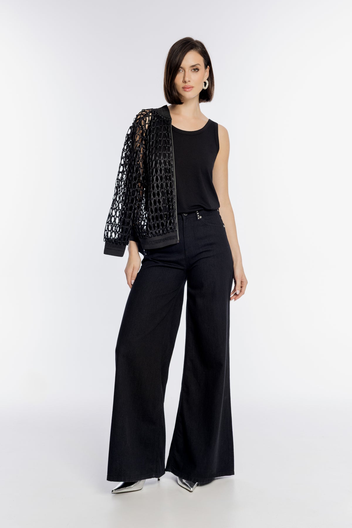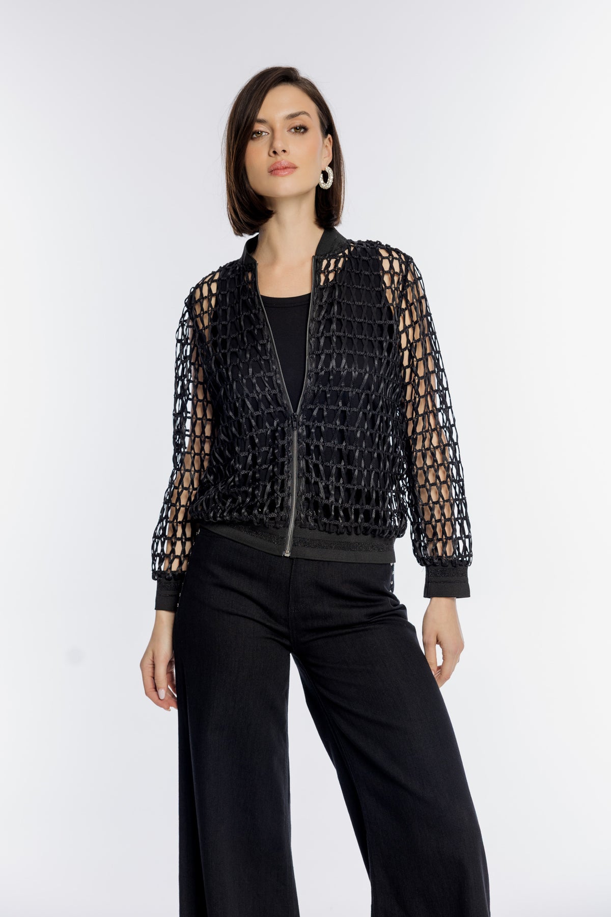 Czarna rozpinana bluza o strukturze ażurowej siatki