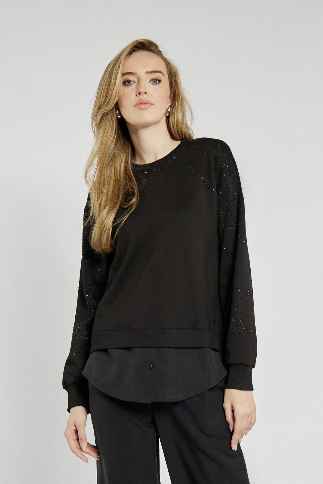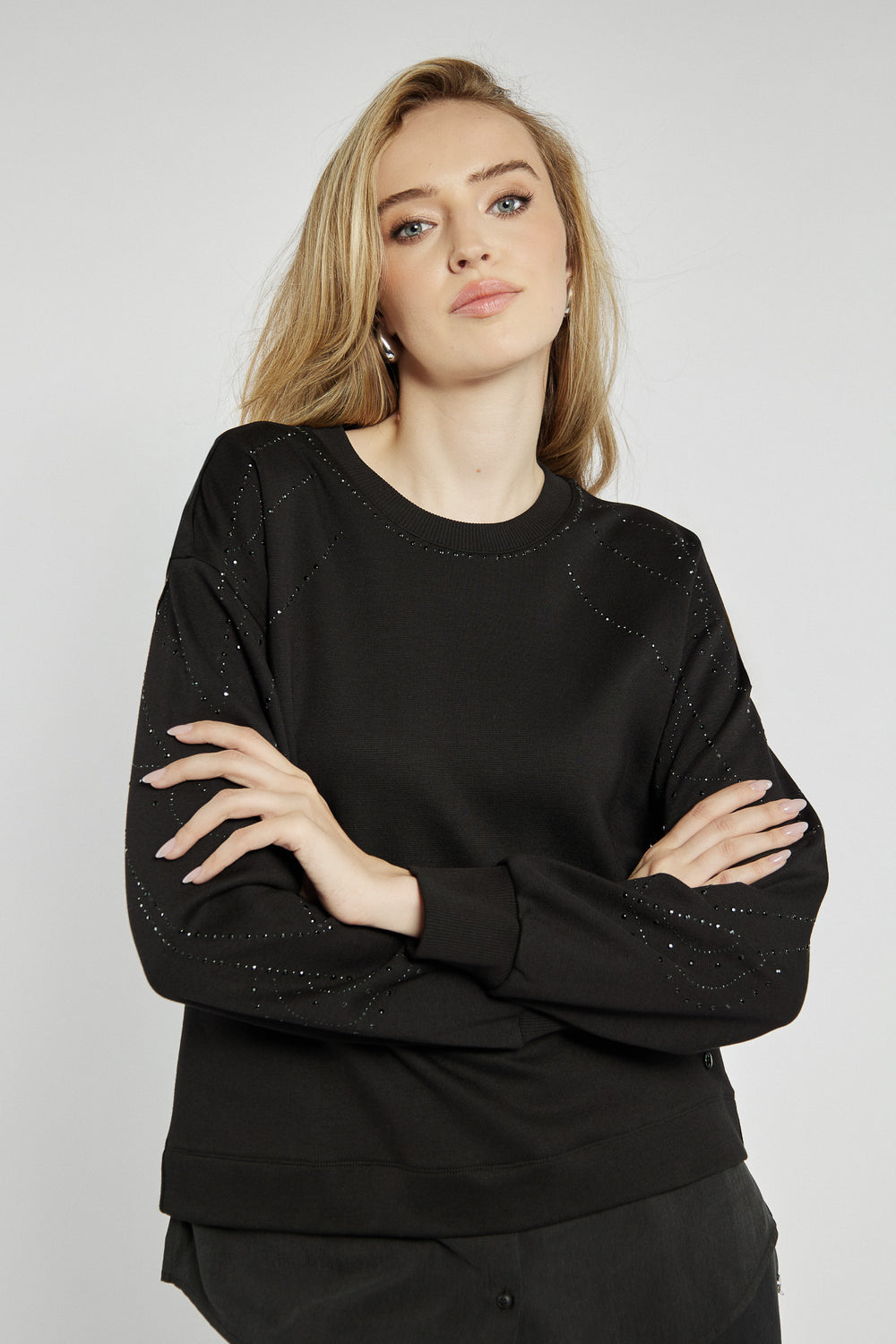 Czarna bluza z subtelnymi zdobieniami na rękawach
