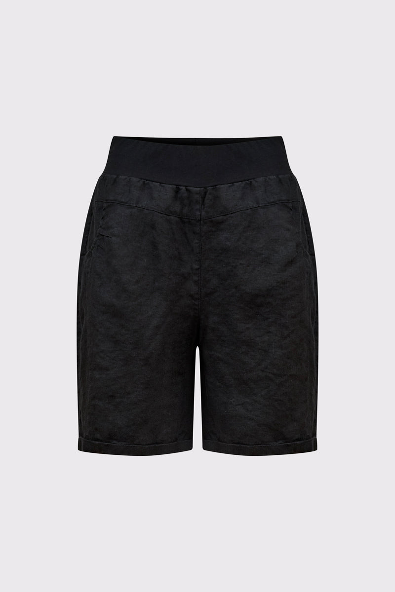 Stylowe damskie szorty marki Campione w głębokim czarnym kolorze to idealna propozycja na cieplejsze dni. Model charakteryzuje się szerokim, elastycznym pasem, który zapewnia doskonałe dopasowanie i wygodę przez cały dzień. Wykonane z wysokiej jakości materiału o subtelnej strukturze, posiadają praktyczne kieszenie boczne oraz elegancko wywinięte nogawki. Prosty, a zarazem nowoczesny krój sprawia, że szorty świetnie prezentują się w zestawieniu z T-shirtem lub zwiewną bluzką, tworząc harmonijny i komfortowy look. To ponadczasowy element garderoby, który łączy w sobie funkcjonalność z minimalistycznym designem klasy premium.