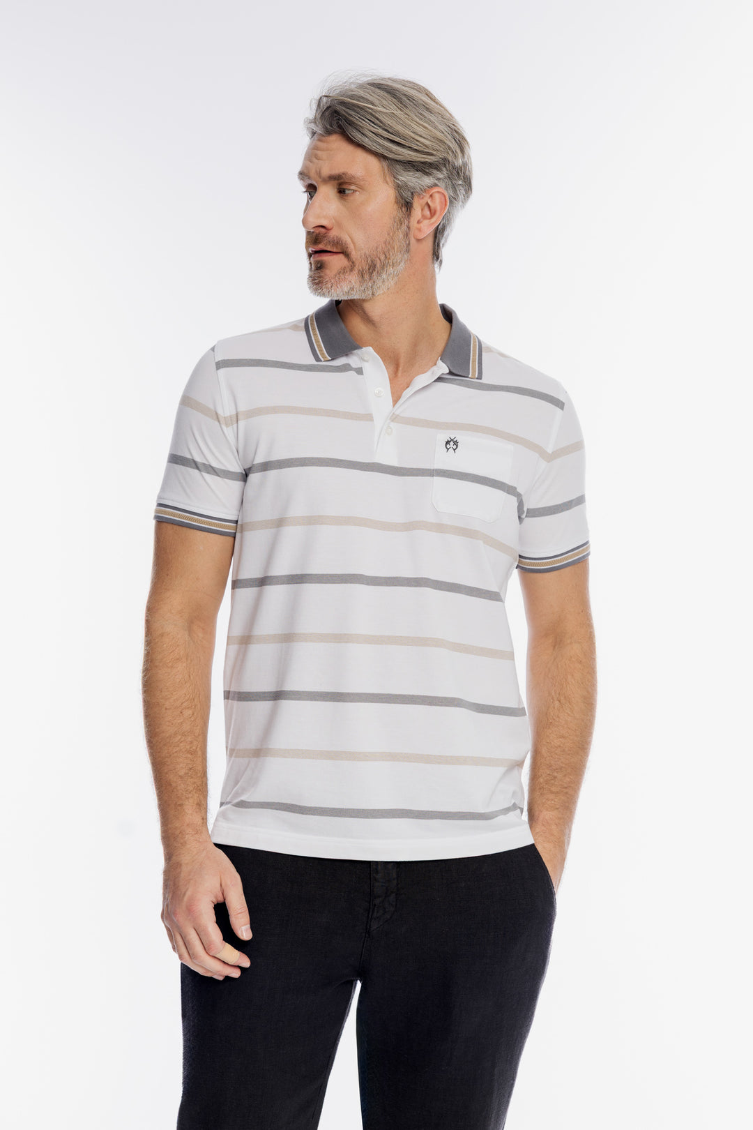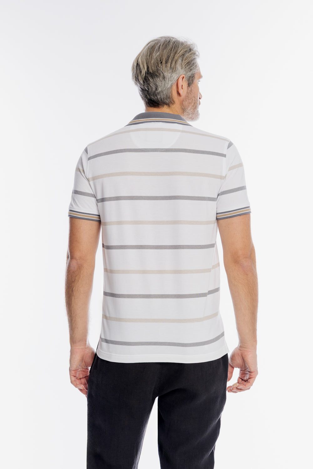 Męska koszulka polo w poziome biało-szare pasy