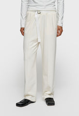 Komfortowe spodnie dresowe o prostej, lekko luźnej nogawce, zaprojektowane z myślą o codziennym użytkowaniu i nowoczesnym stylu. Wykonane z miękkiej, przyjemnej w dotyku dzianiny, zapewniają wygodę noszenia i swobodę ruchów przez cały dzień. Elastyczna talia została uzupełniona regulowanym paskiem z metalową klamrą, który pozwala na indywidualne dopasowanie i stanowi wyrazisty detal stylistyczny. Pionowe przeszycia wzdłuż nogawek optycznie wydłużają sylwetkę i nadają całości dopracowany, minimalistyczny charakter. Spodnie posiadają praktyczne kieszenie boczne oraz tylną kieszeń, a subtelny haft z logo na nogawce podkreśla estetykę marki. Idealne do casualowych i athleisure’owych stylizacji – świetnie komponują się zarówno z dopasowaną bluzką, jak i oversize’ową bluzą czy swetrem.