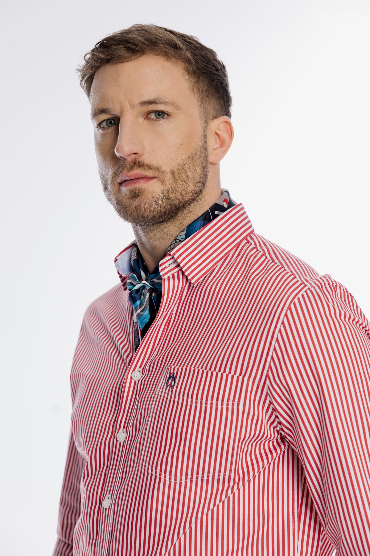 Męska koszula Campione w czerwono białe paski Modern Fit