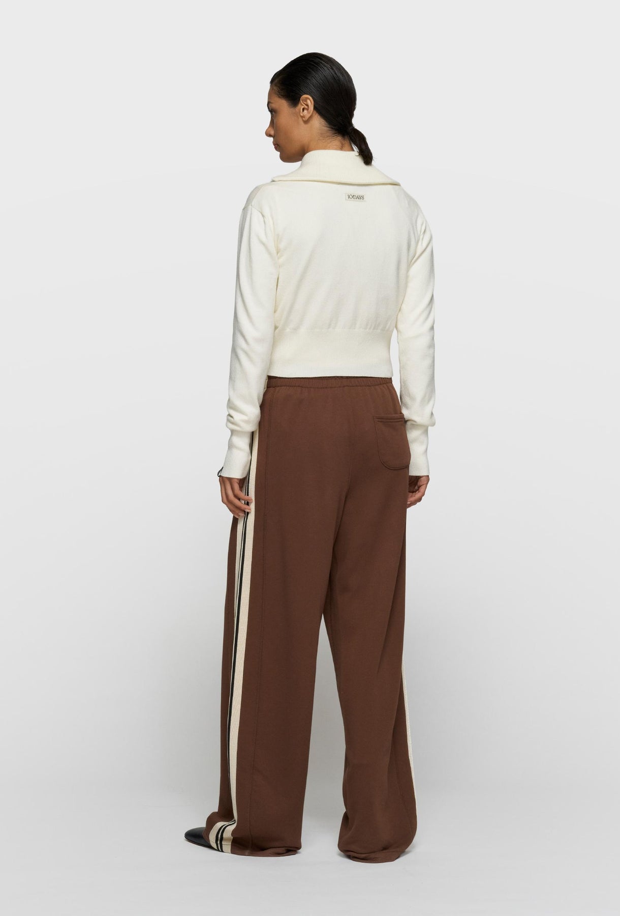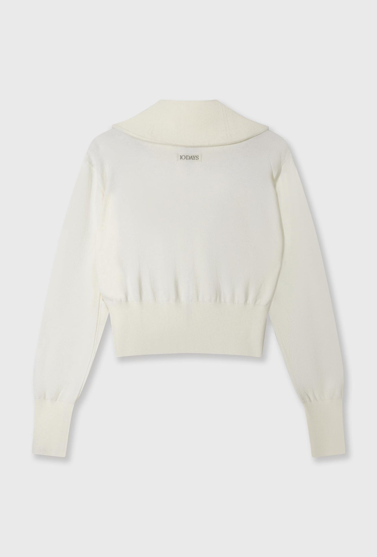 Krótki kardigan dresowy z kontrastowymi przeszyciami w kolorze ecru
