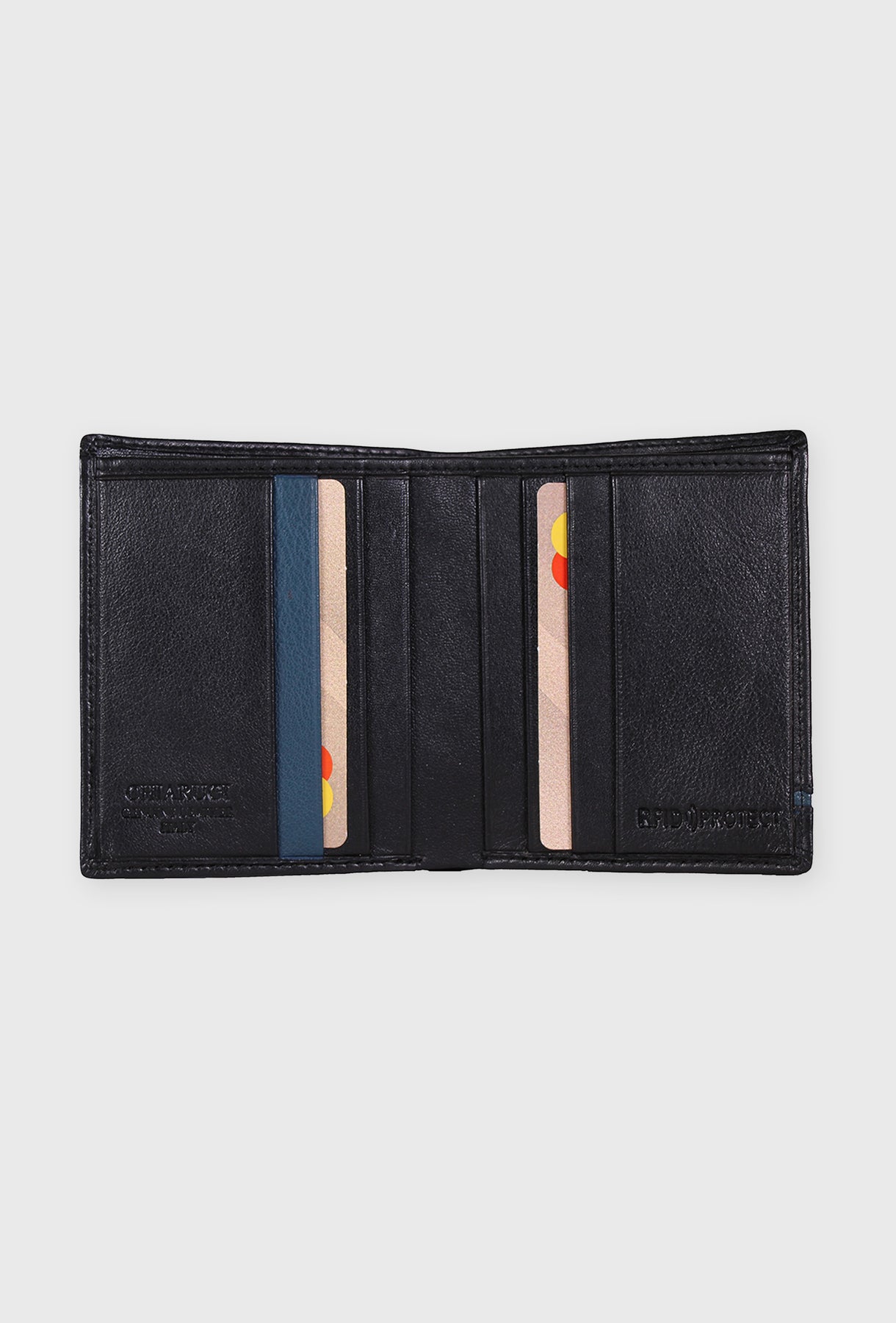 Ten wyjątkowo smukły, pionowy portfel typu slim jest idealnym wyborem dla osób preferujących minimalizm i lekkość noszenia. Wykonany z gładkiej, czarnej skóry naturalnej, charakteryzuje się subtelnym, niebieskim akcentem wzdłuż krawędzi, który dodaje mu nowoczesnego sznytu. Konstrukcja oferuje szybki dostęp do niezbędnych kart, jednocześnie zachowując płaski profil, dzięki czemu idealnie nadaje się do przedniej kieszeni.