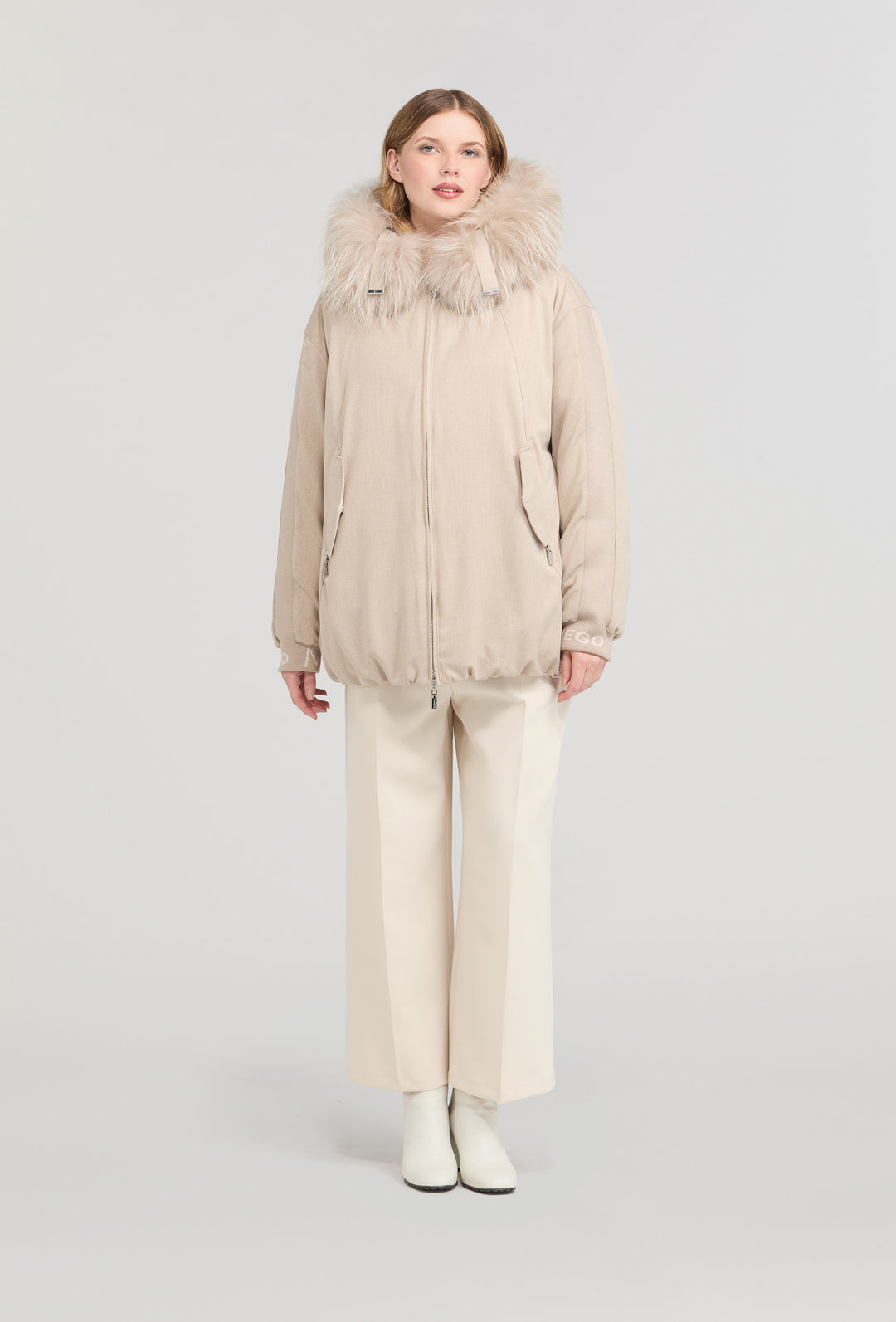 Dwukolorowa krótka kurtka puchowa z kapturem