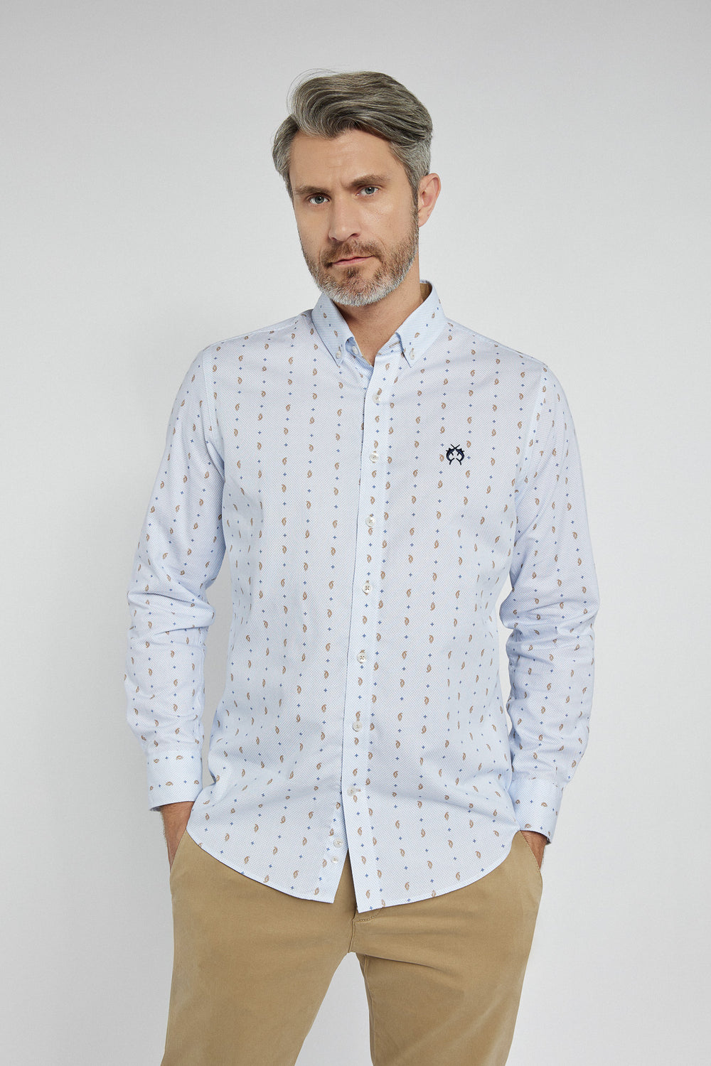 Podstawą mody męskiej jest biała koszula z długim rękawem. Jej uniwersalny charakter sprawia, że doskonale wpasuje się w dress code wielu wydarzeń, od formalnych po swobodne. Zestawiona z garniturem stworzy elegancki zestaw, a w połączeniu z jeansami i marynarką - stylizację smart casual. Równie popularna jest niebieska koszula, która dodaje outfitom świeżości i charakteru, pasując zarówno do formalnych, jak i codziennych zestawień.