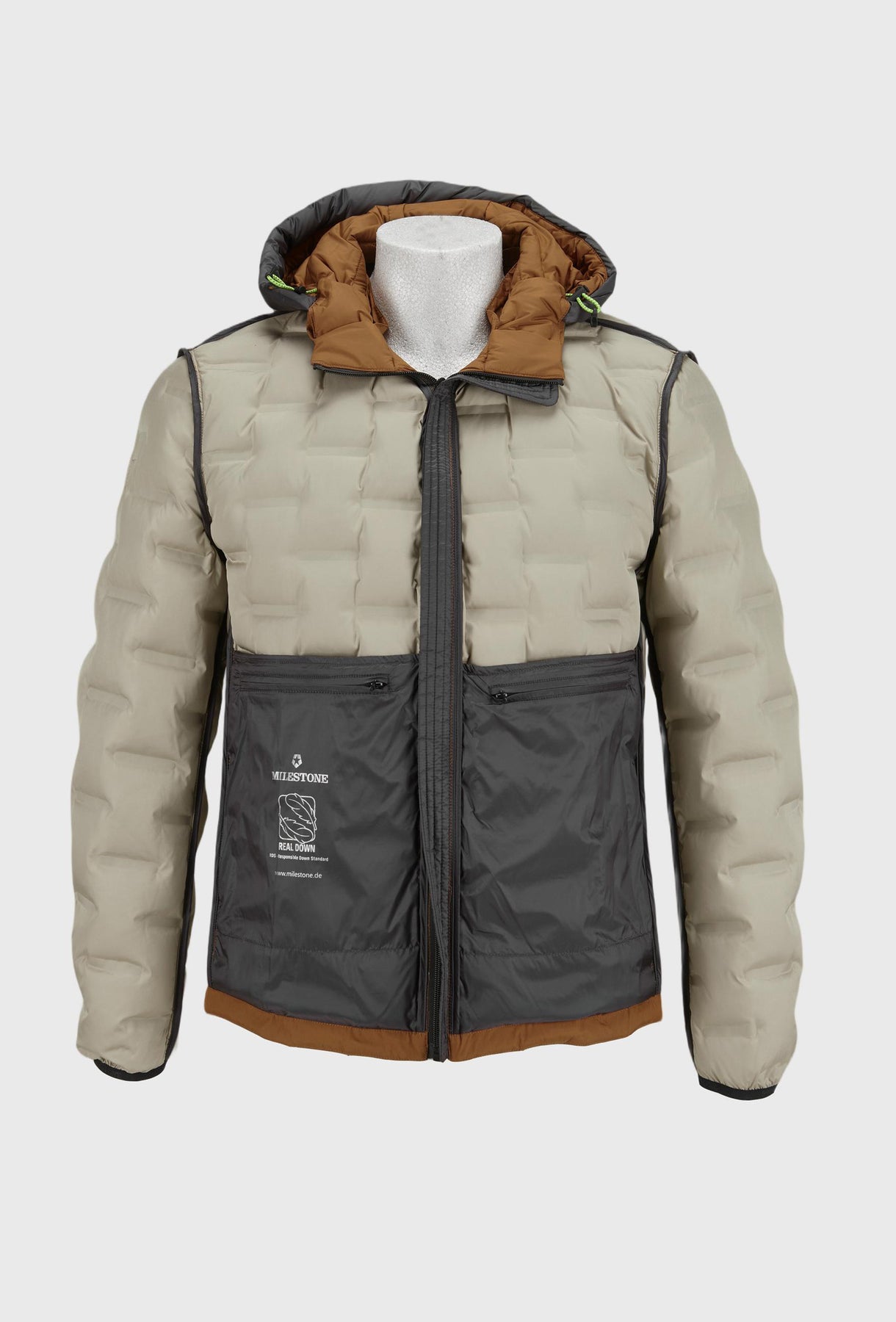 Brązowa pikowana kurtka z odpinanym kapturem