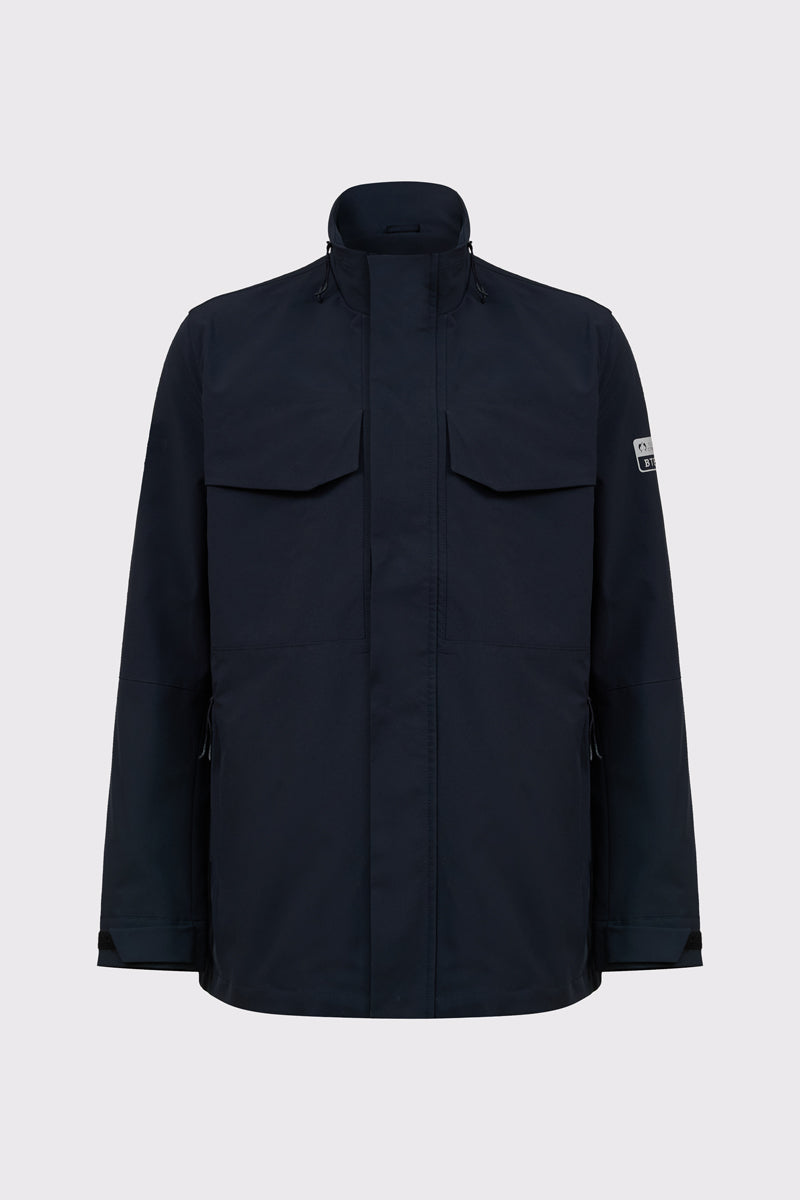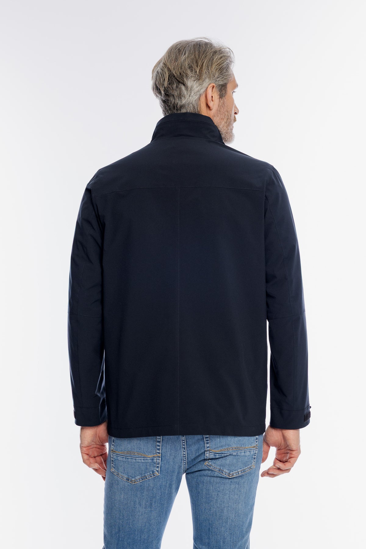 Nowoczesna męska kurtka Campione w kolorze granatowym, zaprojektowana z myślą o komforcie i funkcjonalności. Model wykonany z technicznego materiału typu B-Tech charakteryzuje się wysoką odpornością i minimalistycznym designem. Kurtka posiada praktyczną wysoką stójkę, zapięcie na zamek osłonięty listwą oraz regulowane mankiety na rzepy, co zapewnia świetną ochronę przed niekorzystnymi warunkami pogodowymi. Dwie duże kieszenie na piersi oraz subtelna naszywka z logo na rękawie podkreślają jej nowoczesny, miejski charakter. Idealna dla mężczyzn ceniących sportową elegancję w codziennych stylizacjach.