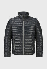 Męska kurtka pikowana, wykonana z miękkiej skóry, która nadaje jej unikalny, luksusowy charakter. Poziome pikowanie dodaje kurtce sportowego wyglądu, a jednocześnie zapewnia lekkość i komfort. Kurtka posiada wysoki kołnierz, zapinany na zamek, oraz praktyczne kieszenie. Elegancki i nowoczesny model, który idealnie sprawdzi się zarówno w casualowych, jak i bardziej stylowych, miejskich zestawieniach.