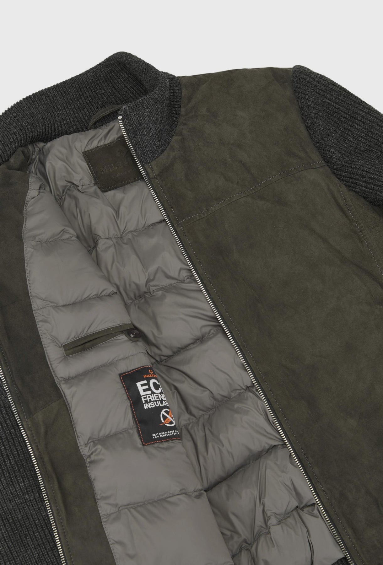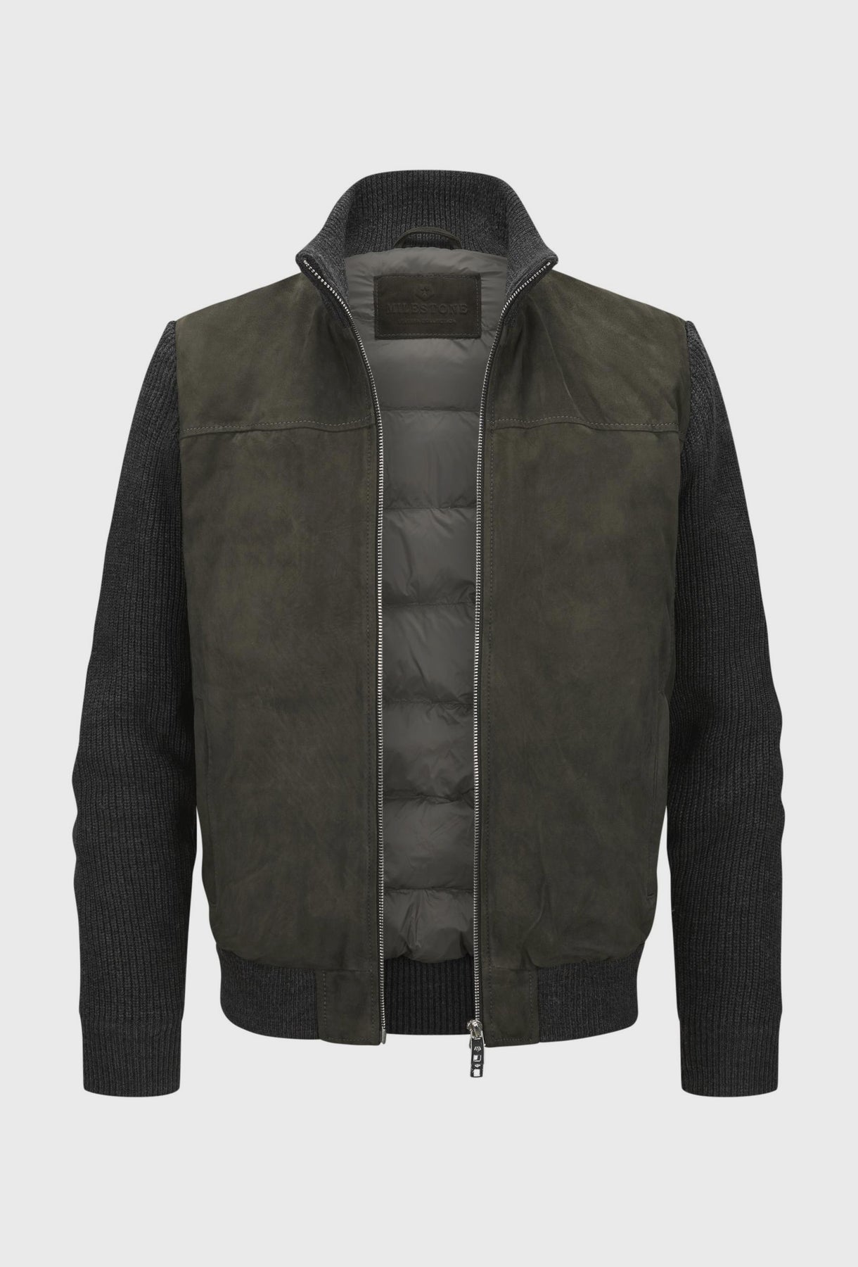 Kurtka skórzana z dzianinowymi rękawami grafitowa