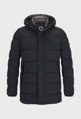 Męska długa kurtka pikowana w uniwersalnym granatowym kolorze to idealny wybór na chłodniejsze dni. Kurtka posiada praktyczny, regulowany kaptur oraz zapięcie na zamek błyskawiczny i guziki, co gwarantuje skuteczną ochronę przed wiatrem i deszczem. Dwie pojemne kieszenie zapinane na zamek zwiększają jej funkcjonalność, a subtelne pikowanie zapewnia doskonałą izolację termiczną. To idealna propozycja dla mężczyzn, którzy poszukują eleganckiego, a zarazem praktycznego okrycia wierzchniego na zimę.
