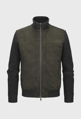 Męska kurtka ze skóry z dzianinowymi rękawami