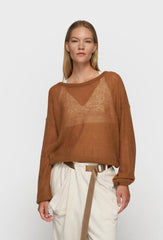 Lekki ażurowy sweter w kolorze taupe z luźnym krojem