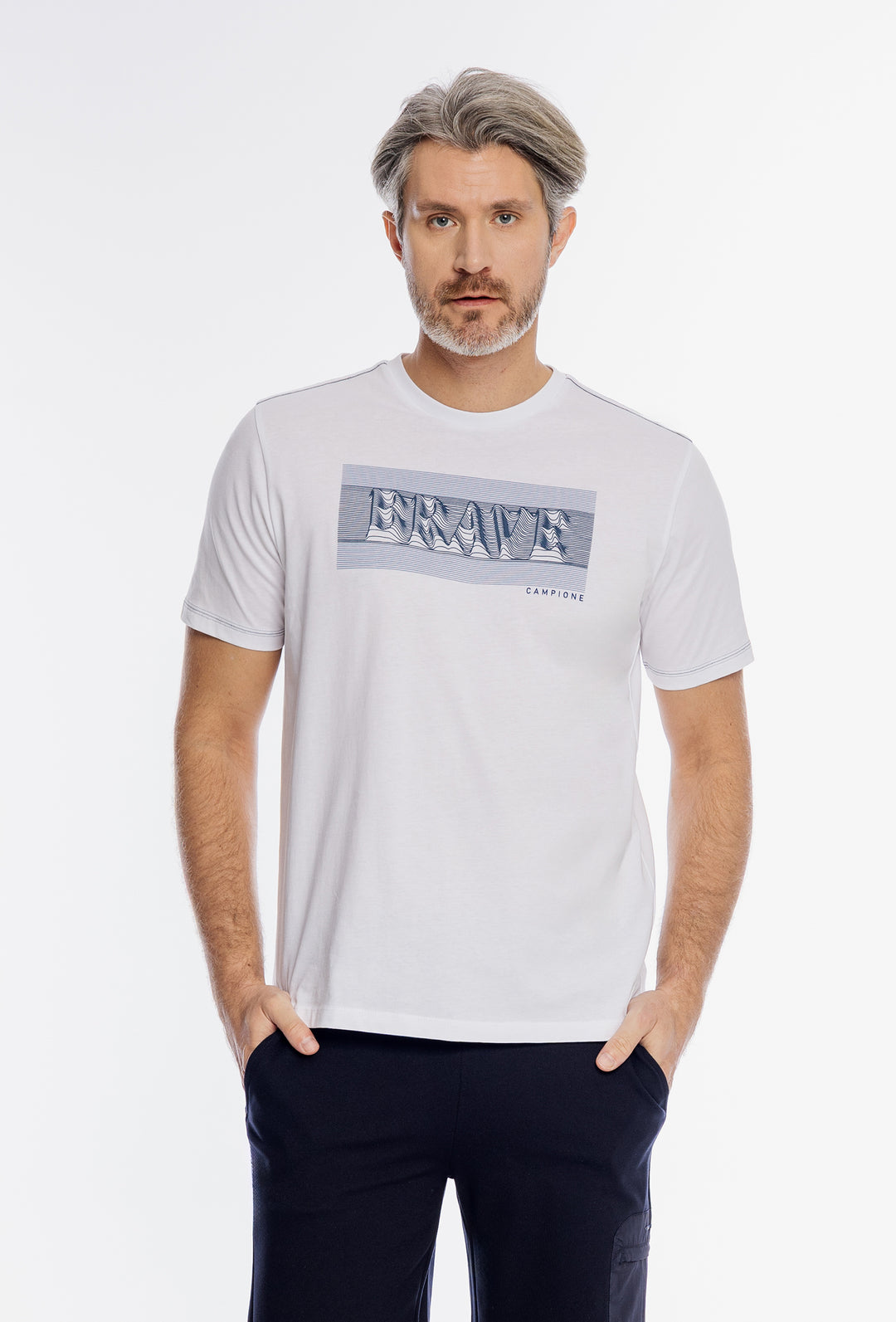 Męska biała koszula Campione w szerokie niebieskie pasy Modern Fit