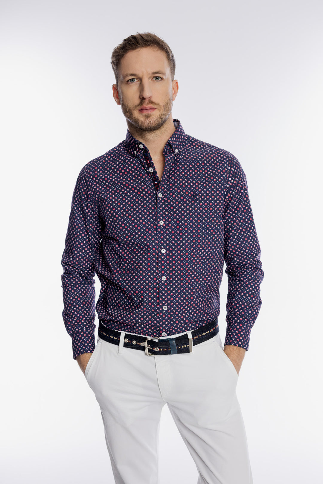 Granatowa koszula męska w drobny geometryczny wzór Modern Fit