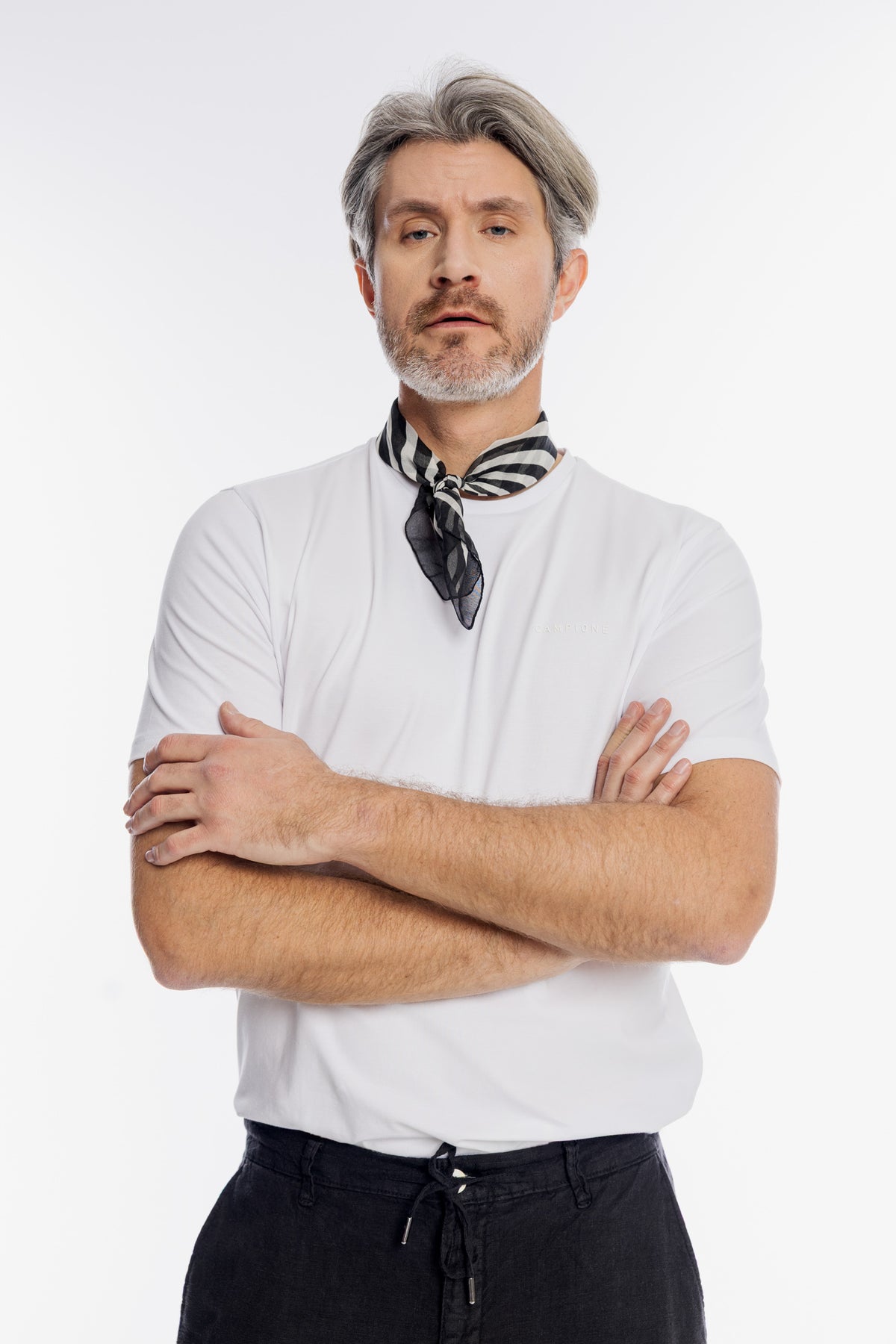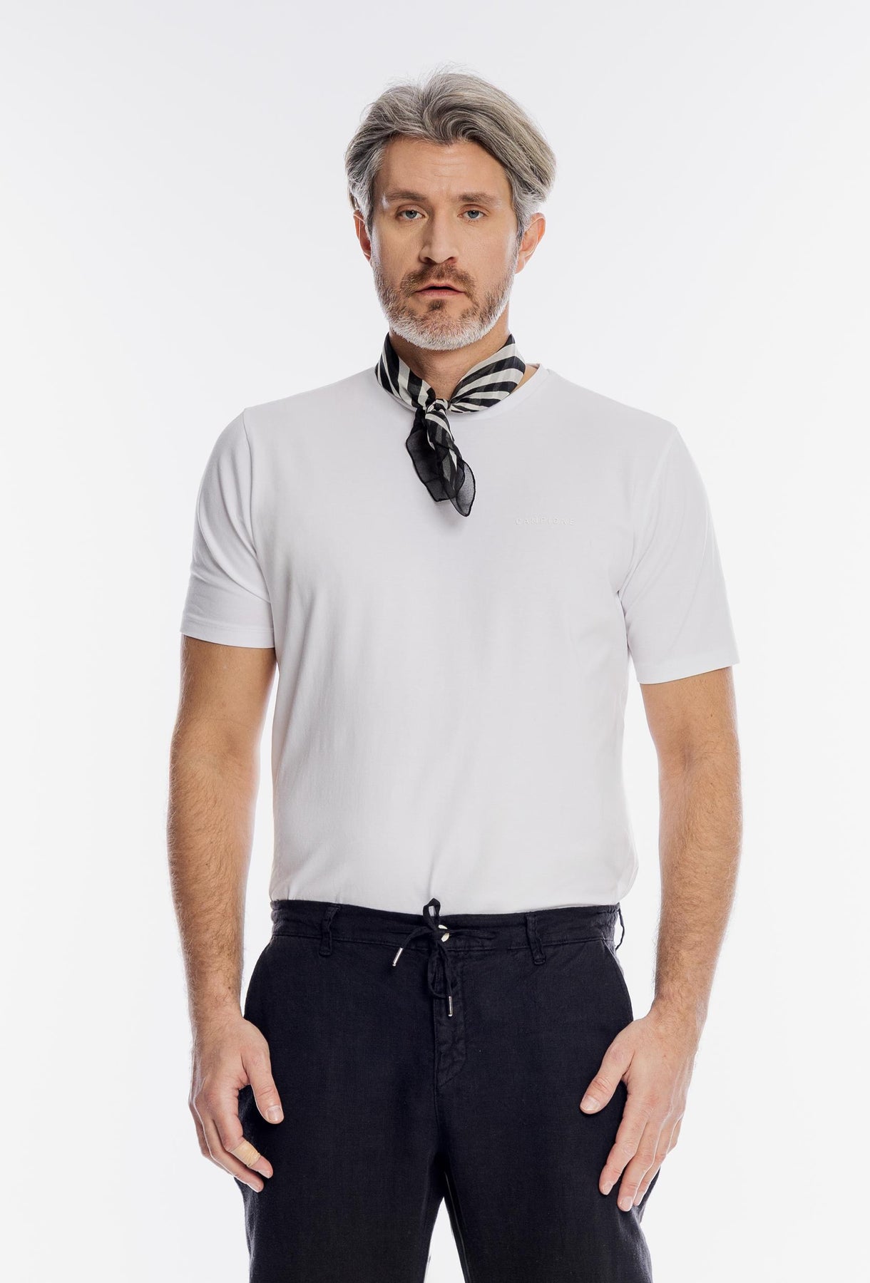Minimalistyczny t-shirt męski Campione w kolorze białym to fundament każdej męskiej garderoby premium. Wykonany z miękkiej, wysokogatunkowej bawełny, zapewnia doskonałą termoregulację i komfort noszenia niezależnie od okazji. Model charakteryzuje się klasycznym, okrągłym dekoltem oraz dyskretnym, wypukłym logo marki na piersi w tym samym odcieniu. Prosty krój i dbałość o detale sprawiają, że koszulka idealnie komponuje się zarówno z lnianymi spodniami, jak i casualowymi jeansami.
