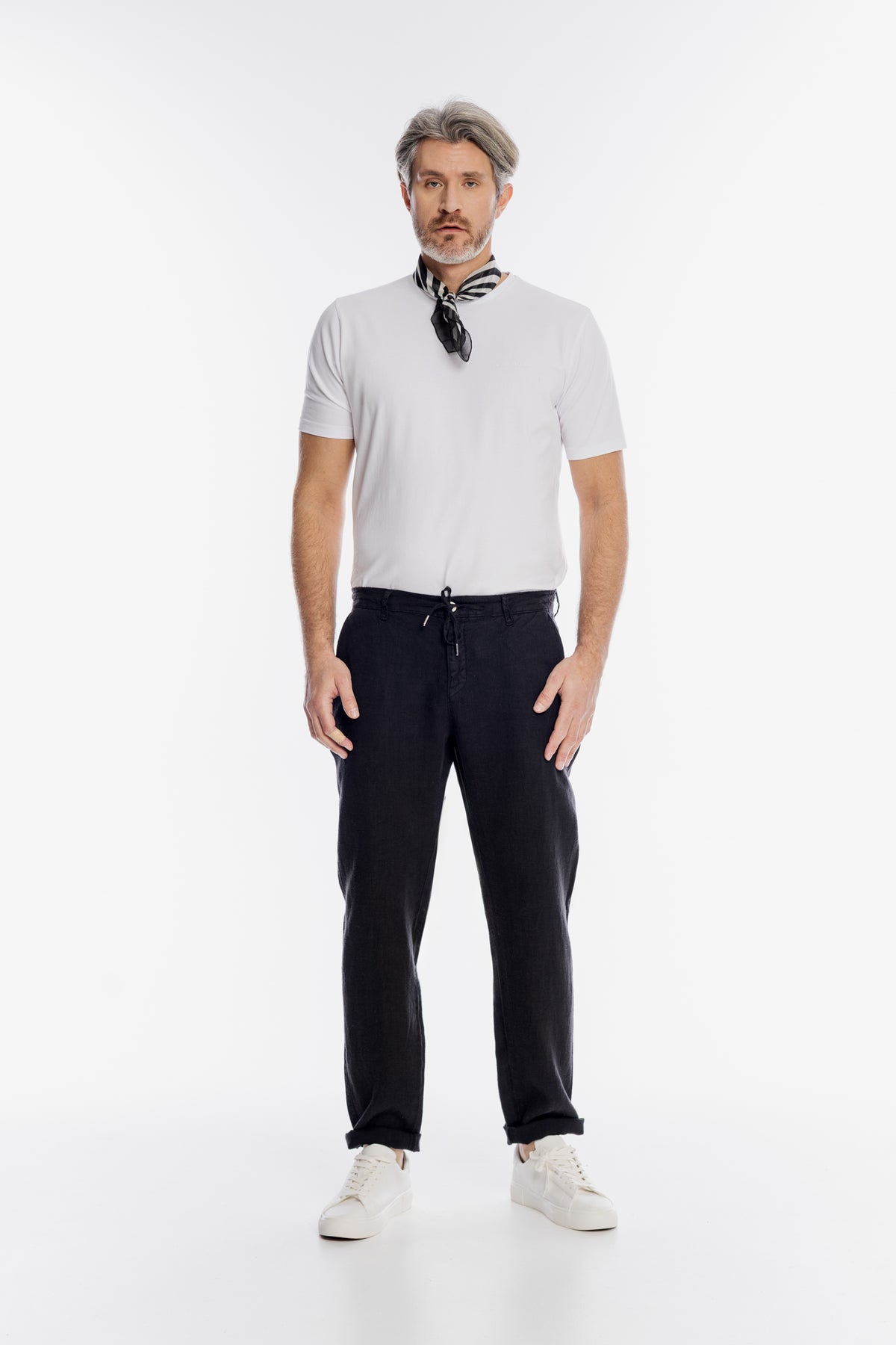 Model ma 190cm wzrostu i nosi rozmiar M. Produkt ma fason Regular Fit i jest zgodny z rozmiarem.