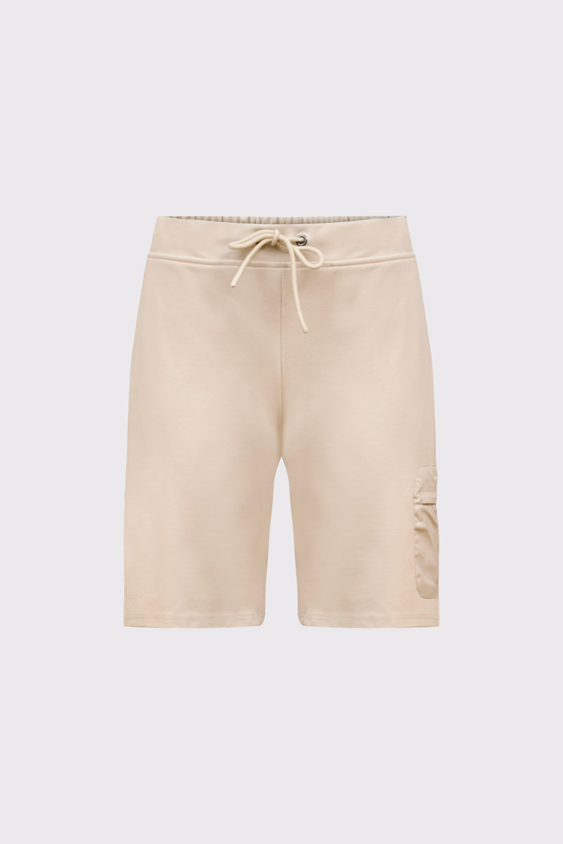 Komfortowe męskie szorty marki Campione w stonowanym beżowym kolorze, łączące sportową wygodę z funkcjonalnymi detalami. Wykonane z wysokiej jakości, miękkiej dzianiny, zapewniają doskonałą cyrkulację powietrza i swobodę ruchów podczas letnich aktywności. Spodenki posiadają elastyczny pas z regulacją na sznurek, klasyczne kieszenie boczne oraz dodatkową, zapinaną kieszeń typu cargo na lewej nogawce, ozdobioną subtelnym logo marki. Prosty krój i uniwersalna kolorystyka sprawiają, że szorty idealnie komponują się z koszulkami polo lub klasycznymi t-shirtami, tworząc stylowy look na co dzień.