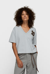 Bawełniany T-shirt z dekoltem V i naszywką "10"