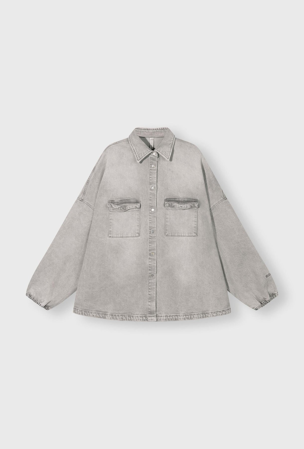 Luźna koszula jeansowa oversize z postarzanej szarej bawełny