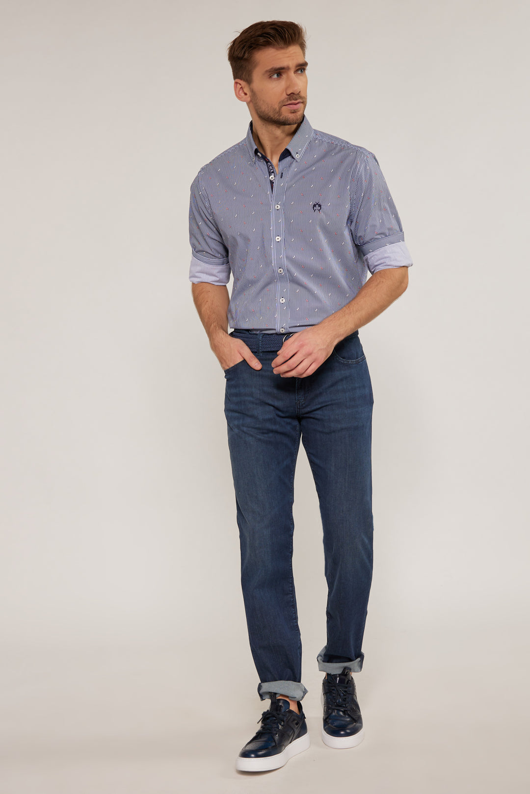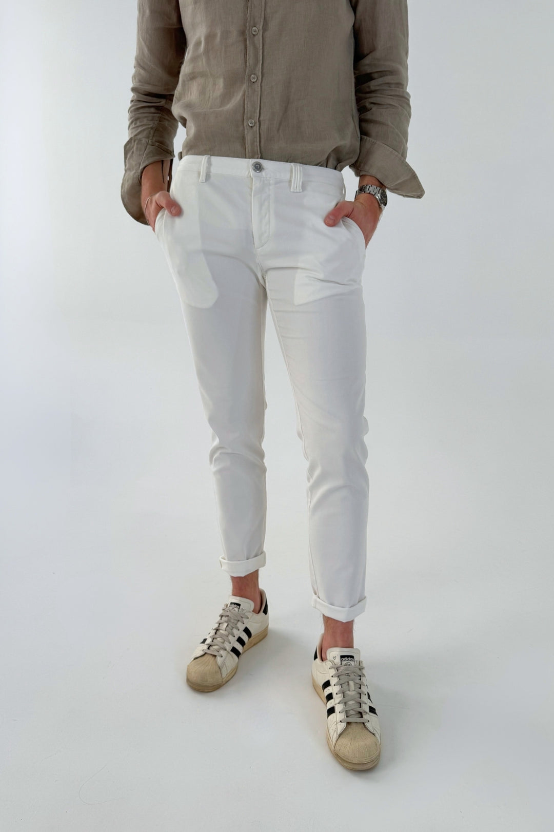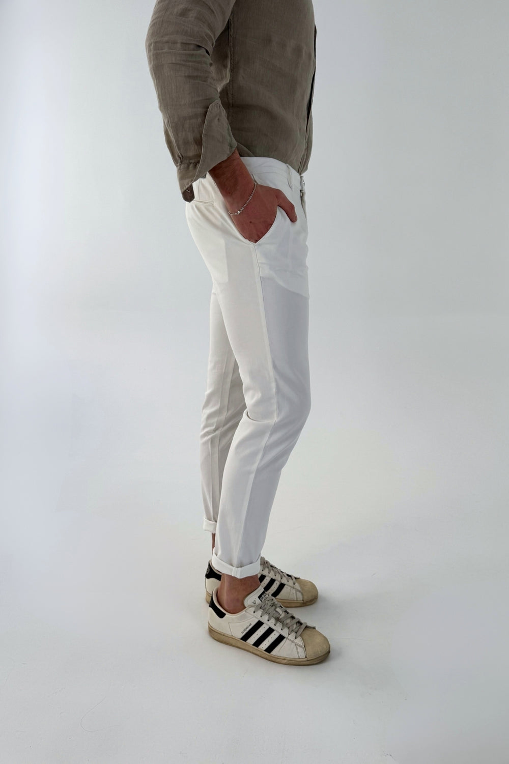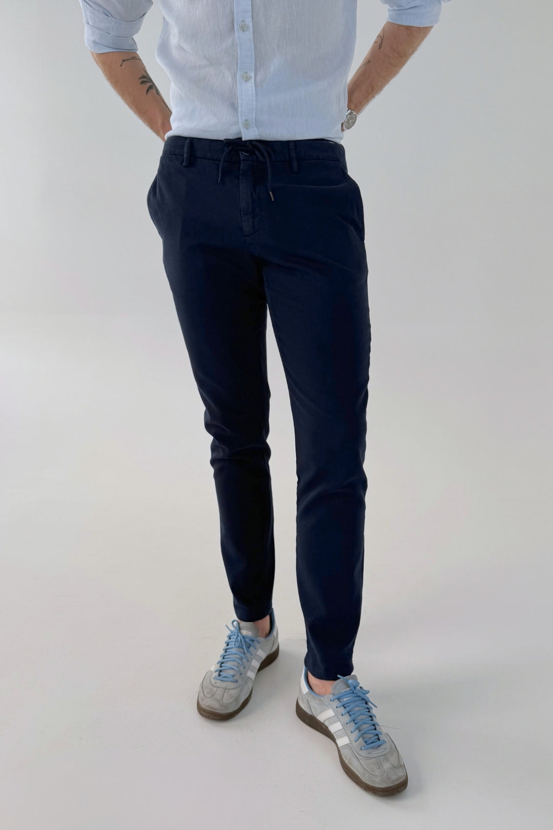 Spodnie materiałowe męskie to model, który sprawdzi się w każdej sytuacji. Spodnie męskie materiałowe są wygodne, trwałe i dostępne w różnych kolorach, takich jak białe spodnie męskie czy jasne spodnie męskie, które będą niezastąpione w letnich stylizacjach – kolekcja Claudio Campione Yachting zawiera marynistyczne wzory i kolory w tym właśnie białe spodnie, które świetnie połączą się z granatową polówką lub koszulą tworząc elegancką ale jednocześnie sportową stylizację. Stanowią doskonałą bazę do stylizacji casualowych i smart-casualowych.
