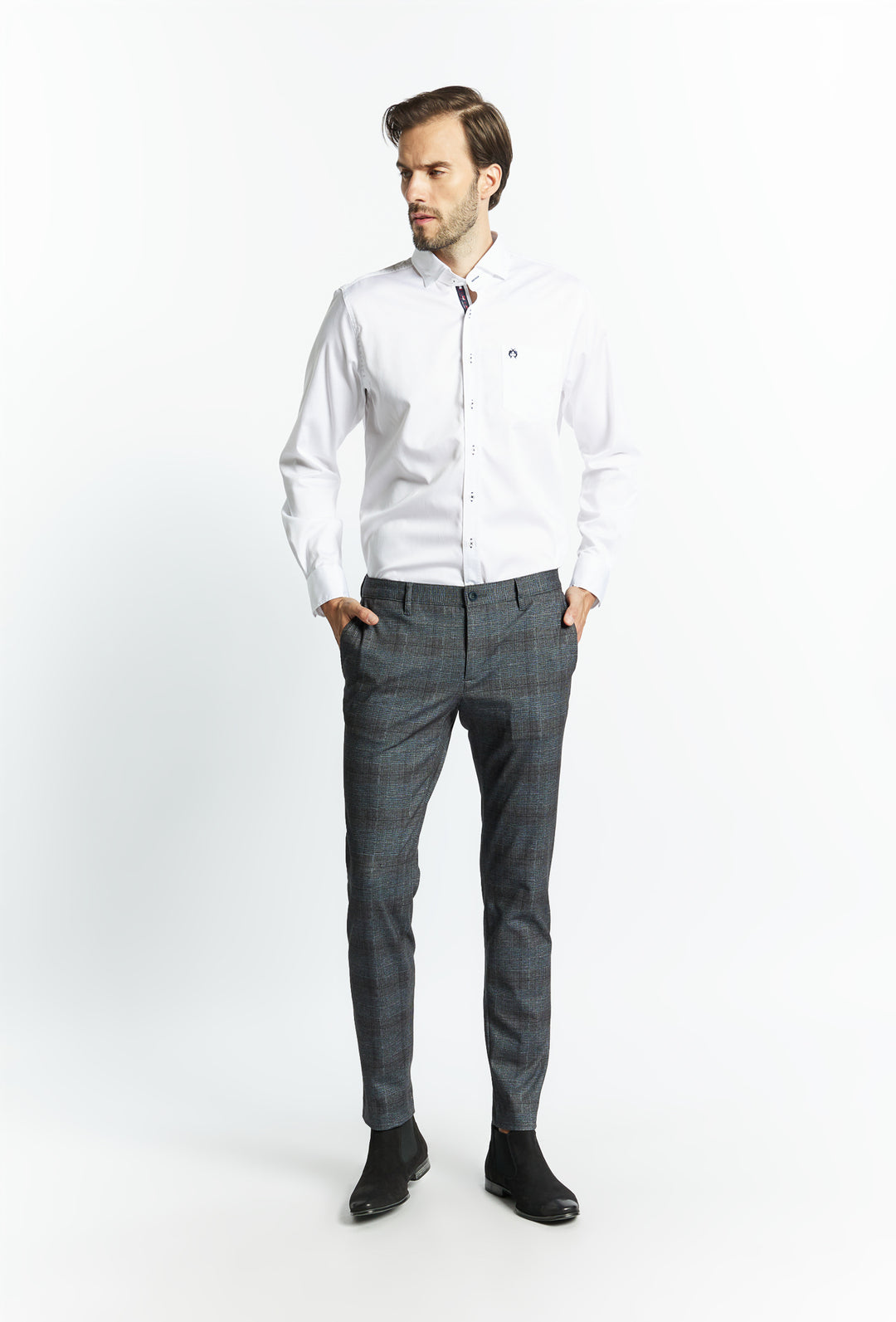 Dla mężczyzn ceniących formalny styl eleganckie spodnie męskie będą nieodzownym elementem garderoby. Spodnie męskie w kratę czy spodnie eleganckie męskie łączą klasyczny wygląd z nowoczesnym designem. Idealne na spotkania biznesowe, wieczorne wyjścia czy uroczystości rodzinne, te modele pozwalają stworzyć profesjonalny i stylowy wizerunek. W połączeniu z koszulą i marynarką stworzą stylizację elegancką z nutką nowoczesności. Wzór spodni w kratę to jeden z najpopularniejszych motywów w modzie męskiej. Spodnie w kratę męskie nadają stylizacji niepowtarzalnego charakteru. Są doskonałym wyborem na mniej formalne okazje, łącząc luz z elegancją. Męskie spodnie w kratę świetnie komponują się z gładkimi koszulami lub swetrami.