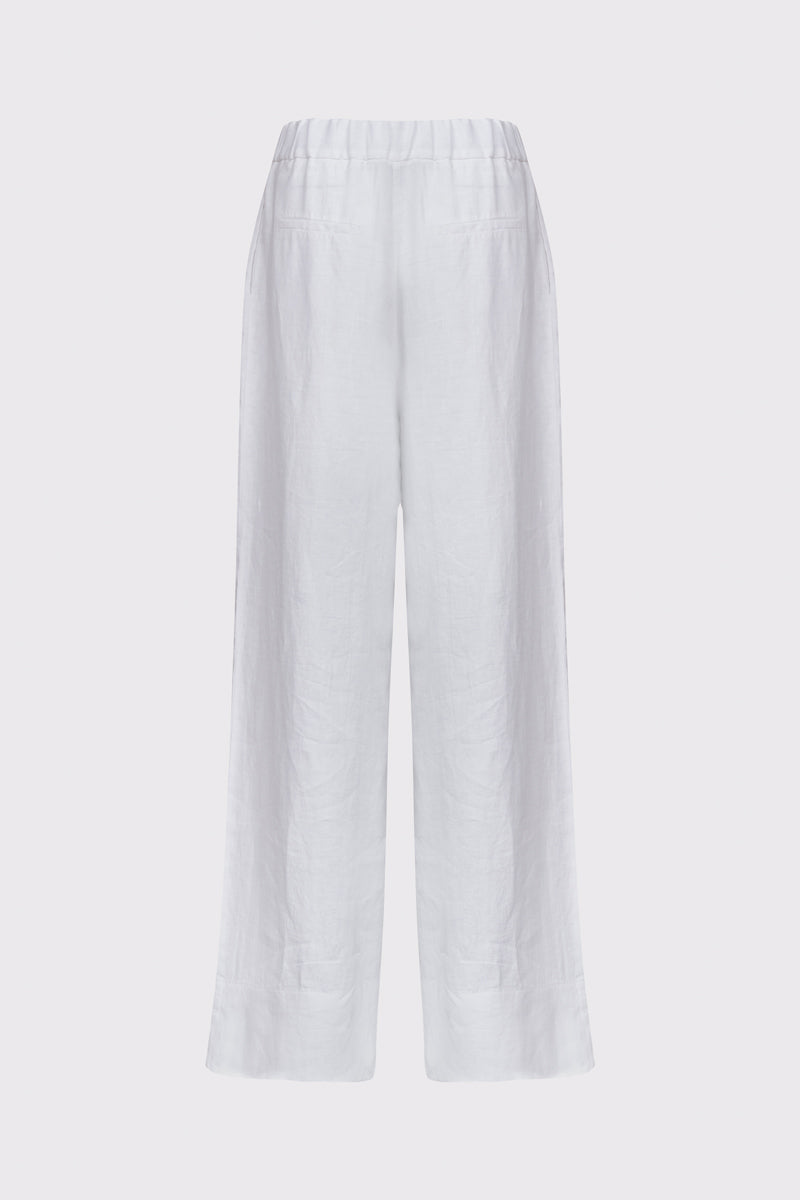 Białe lniane spodnie damskie z szerokimi nogawkami