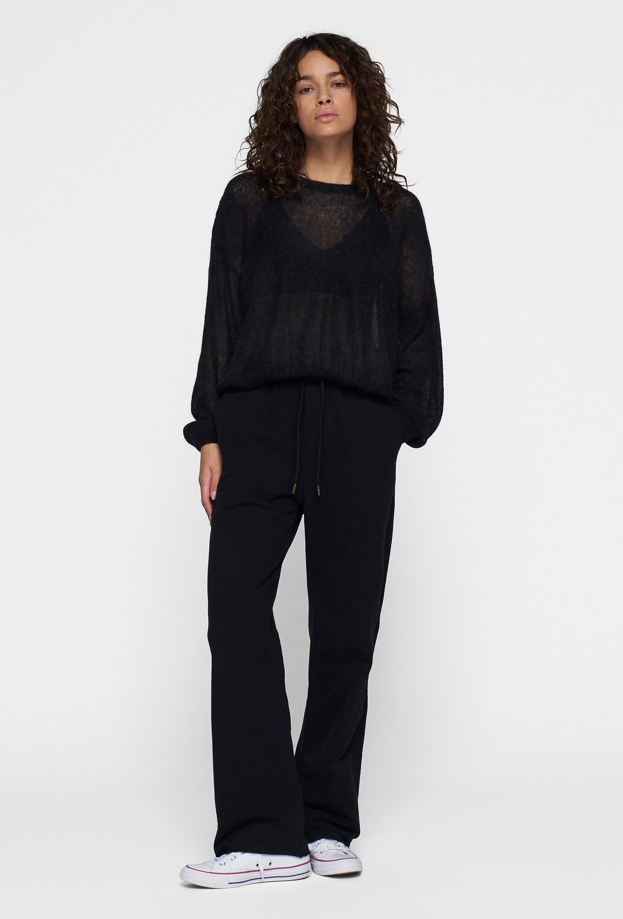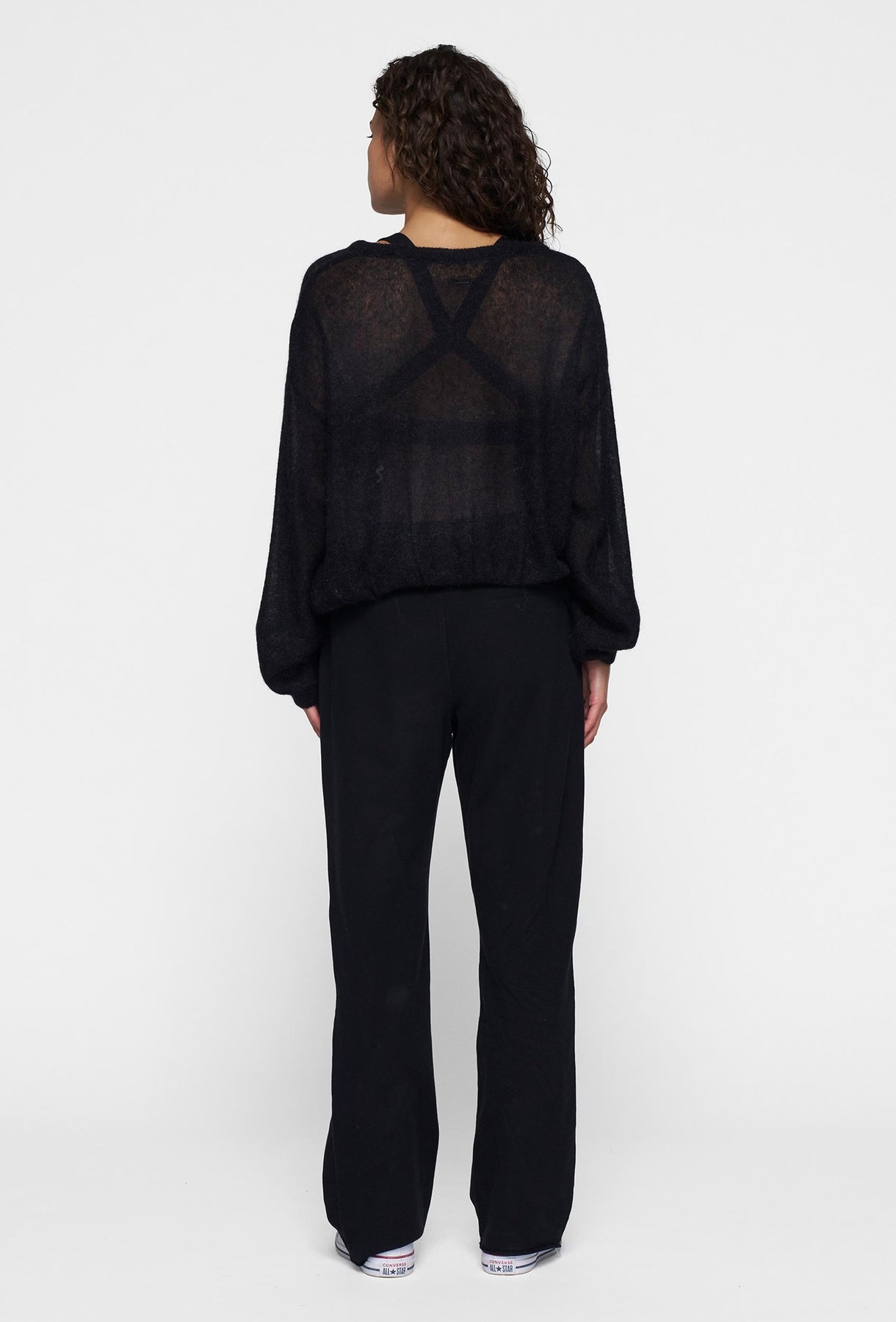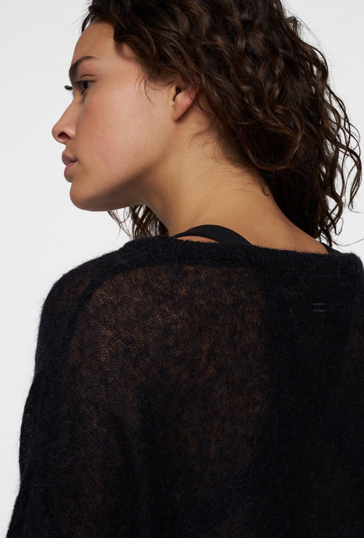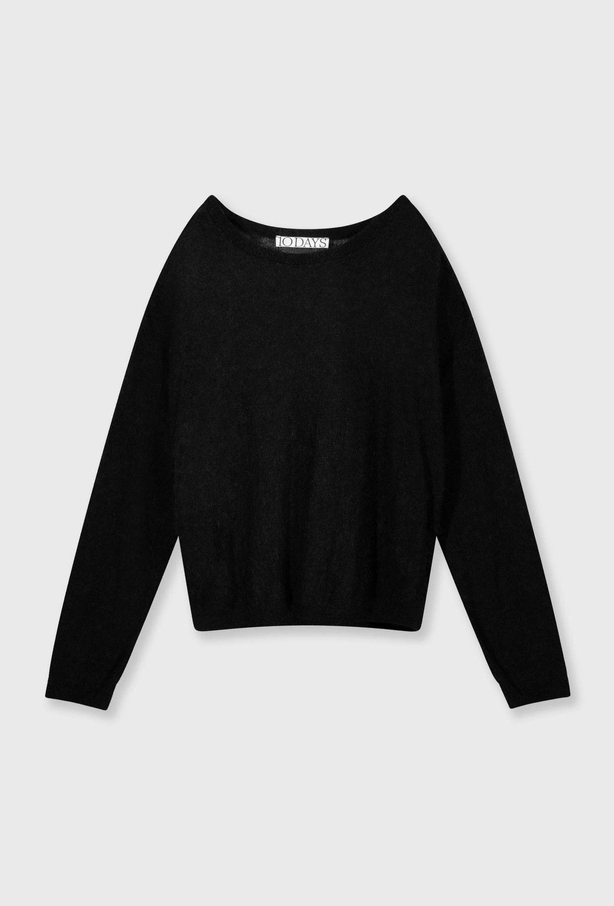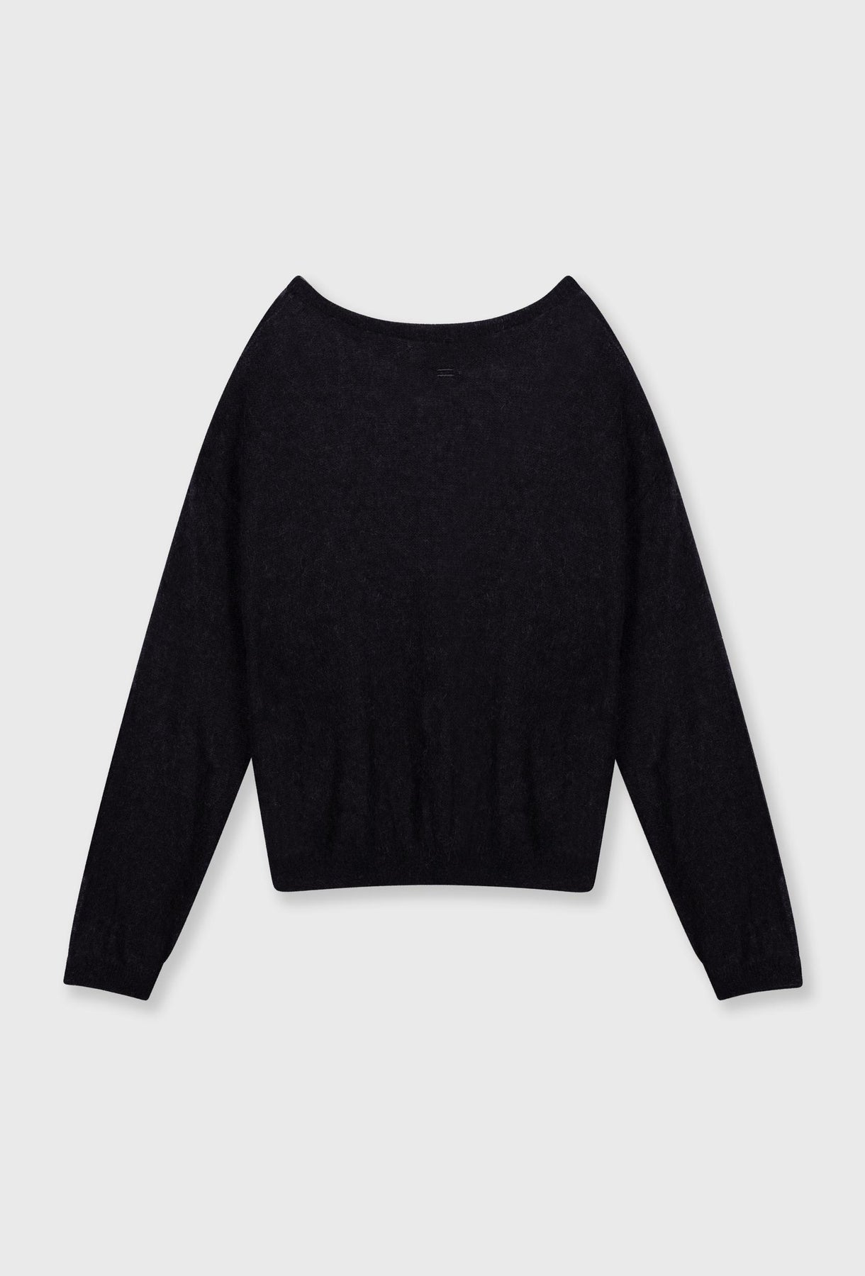 Cienki wełniany sweter z dekoltem w łódkę w kolorze czarnym