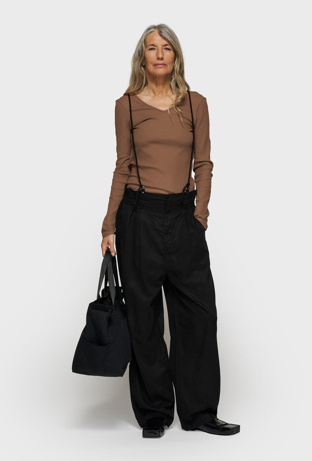 Czarne ogrodniczki na lato z cienkimi szelkami