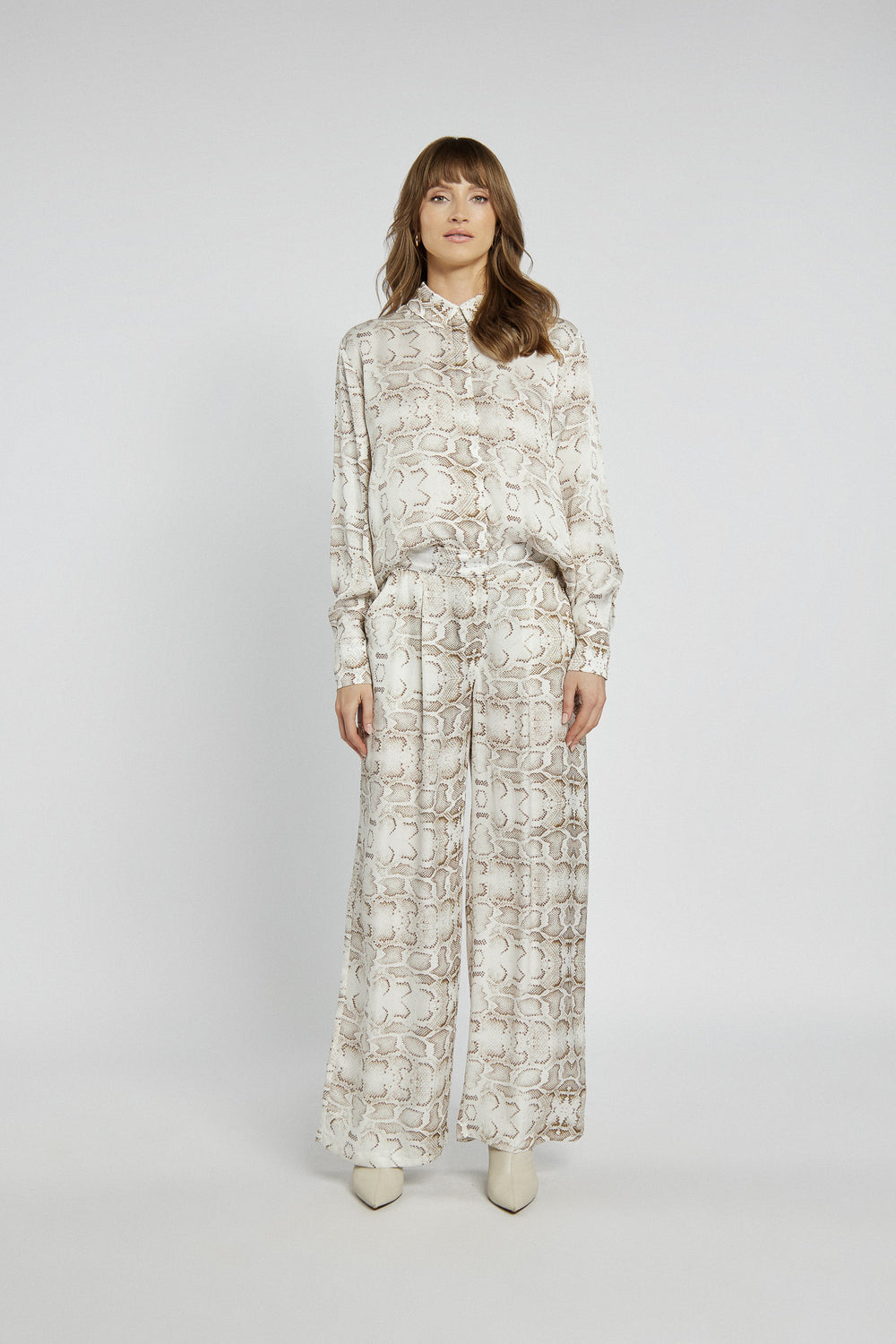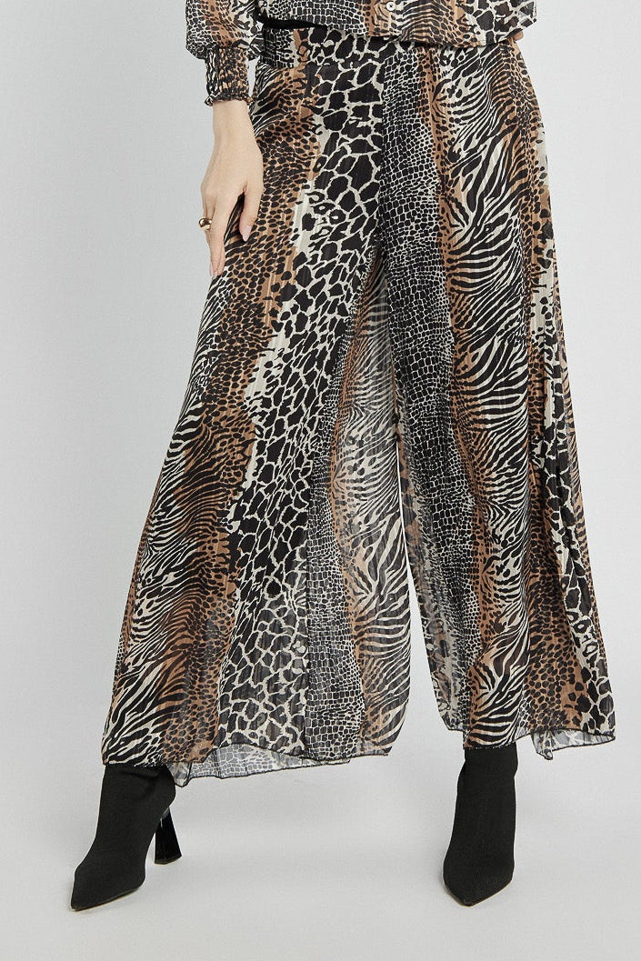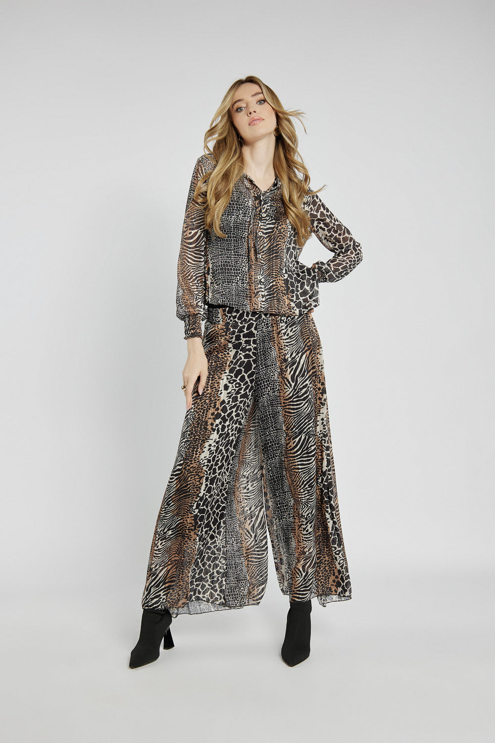 Szerokie spodnie w zwierzęcy print z szyfonu