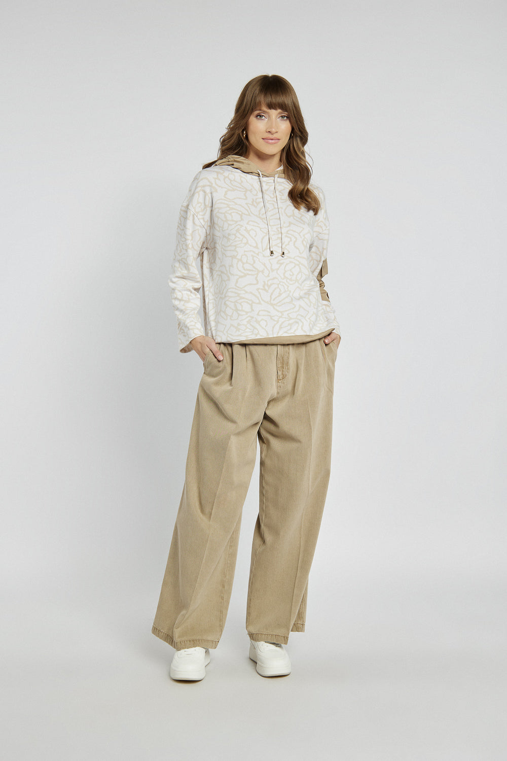 Spodnie o szerokim kroju, z niskim krokiem, w kolorze kremowym