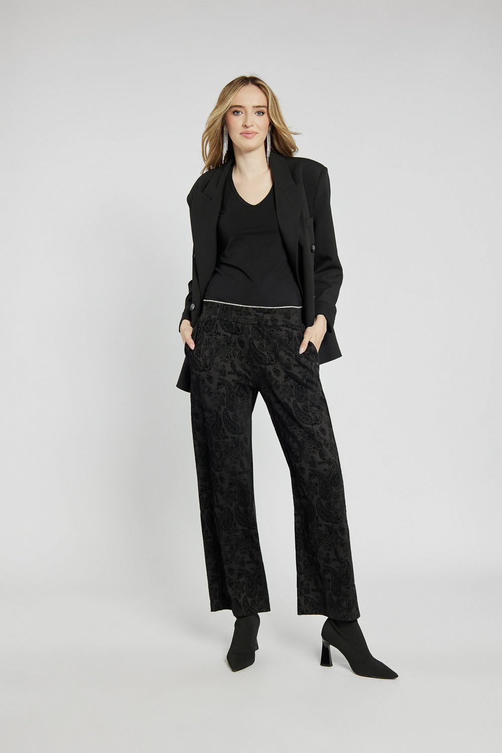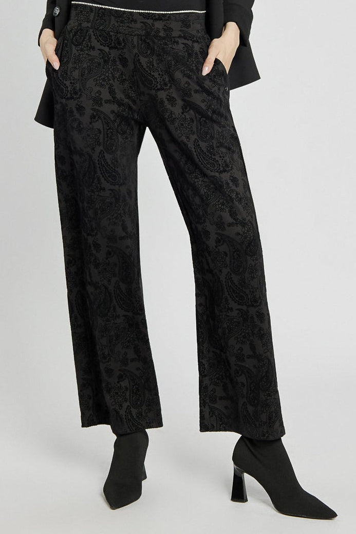 Eleganckie czarne spodnie w wytłaczany wzór paisley