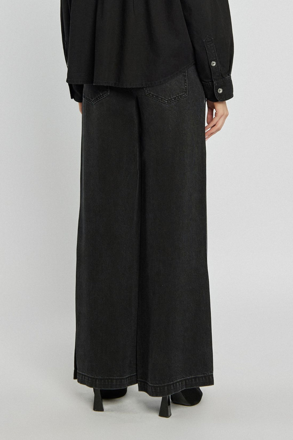 Klasyczne spodnie w czarnym kolorze z rozcięciem na nogawce