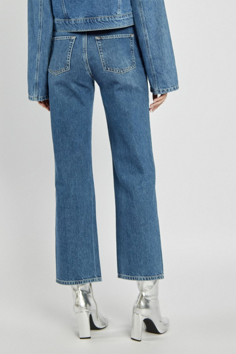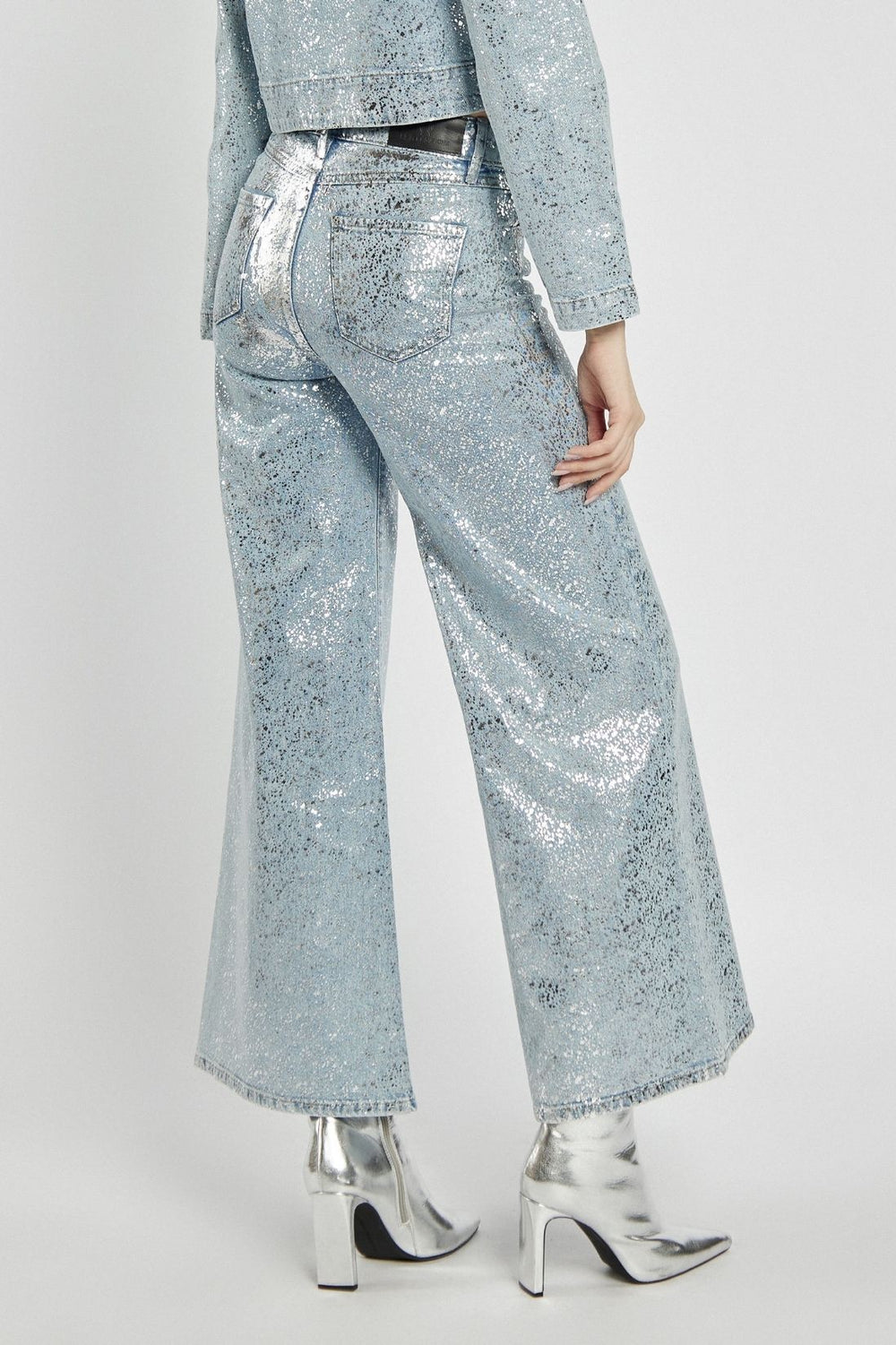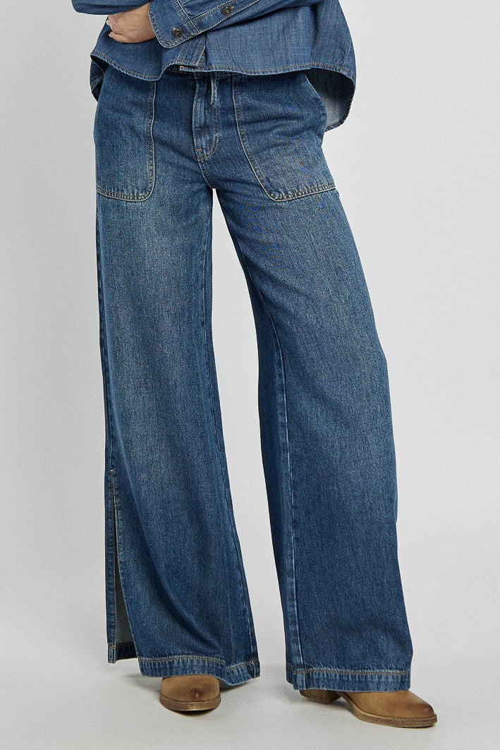 Granatowe dżinsy z szeroką nogawką i ćwiekami
