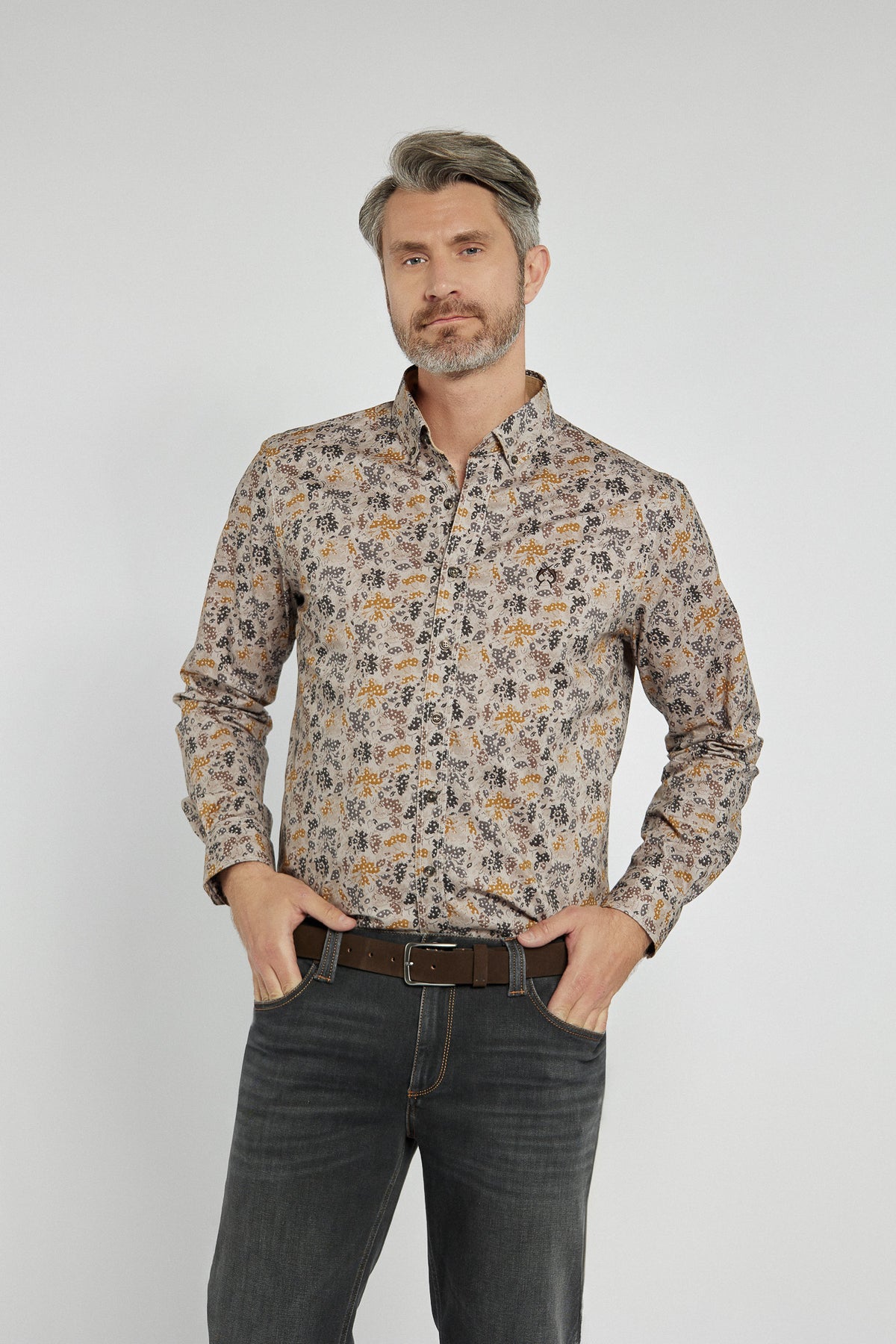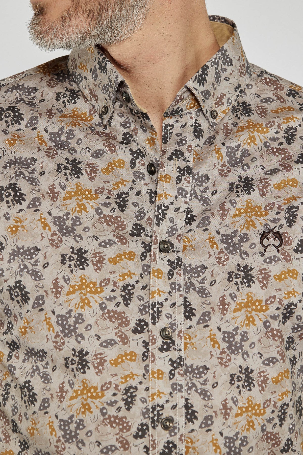 Męska koszula Campione w odcieniach beżu, z multikolorowym, drobnym wzorem roślinnym na całej powierzchni, to doskonała propozycja dla mężczyzn ceniących oryginalny styl. Wykonana z wysokiej jakości tkaniny, zapewnia komfort noszenia i doskonałe dopasowanie. Kołnierzyk button-down i eleganckie guziki dodają jej szyku. Idealna do casualowych stylizacji, doskonale komponuje się z jeansami i chinosami.