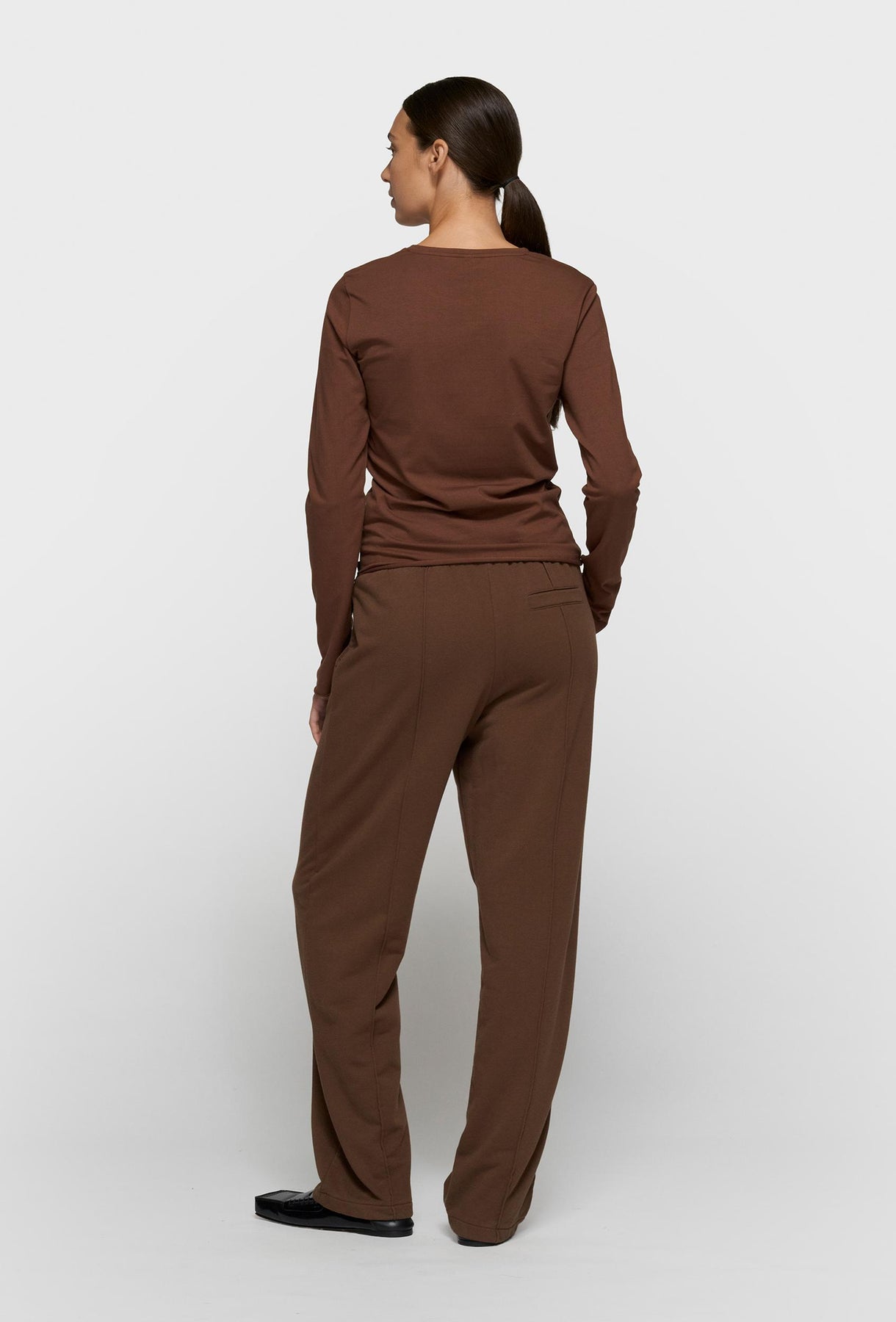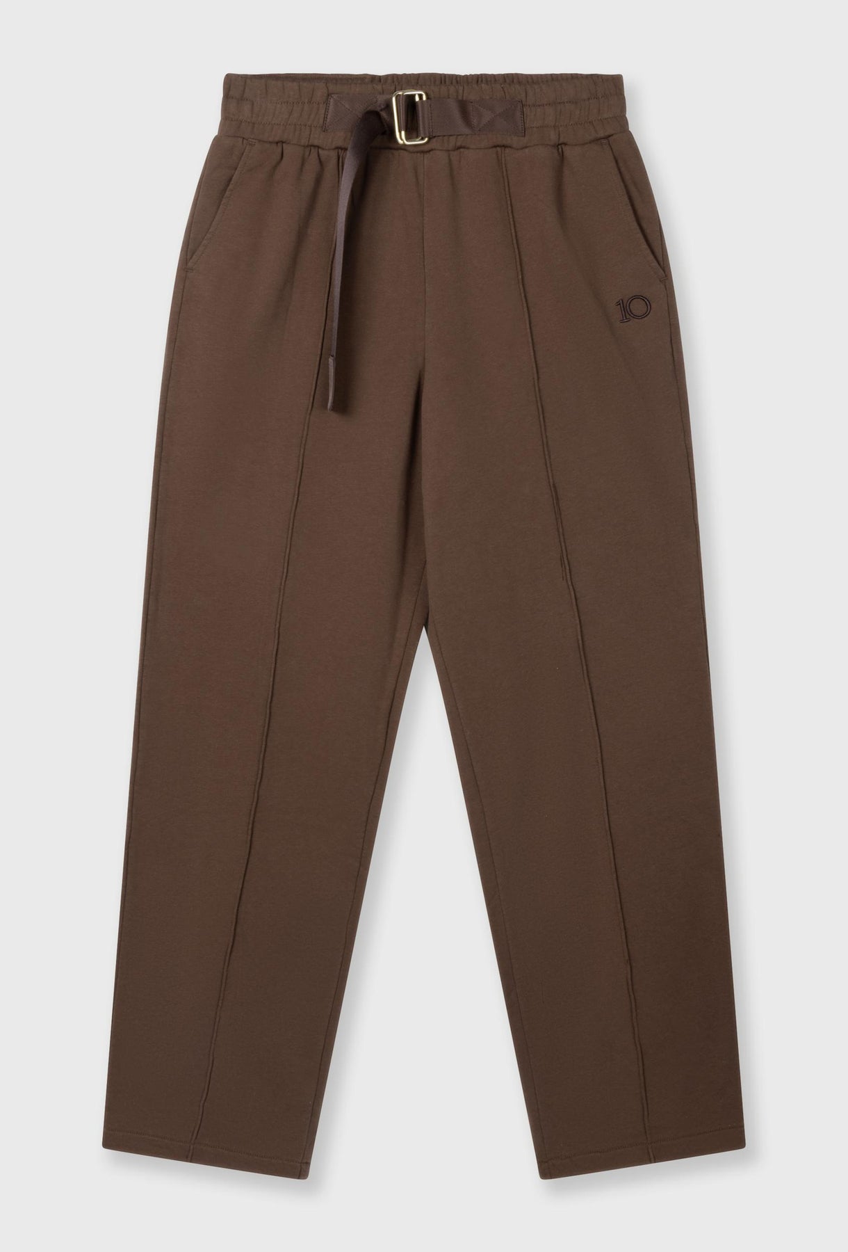 Komfortowe spodnie dresowe o prostej, lekko luźnej nogawce, zaprojektowane z myślą o codziennym użytkowaniu i nowoczesnym stylu. Wykonane z miękkiej, przyjemnej w dotyku dzianiny, zapewniają wygodę noszenia i swobodę ruchów przez cały dzień. Elastyczna talia została uzupełniona regulowanym paskiem z metalową klamrą, który pozwala na indywidualne dopasowanie i stanowi wyrazisty detal stylistyczny. Pionowe przeszycia wzdłuż nogawek optycznie wydłużają sylwetkę i nadają całości dopracowany, minimalistyczny charakter. Spodnie posiadają praktyczne kieszenie boczne oraz tylną kieszeń, a subtelny haft z logo na nogawce podkreśla estetykę marki. Idealne do casualowych i athleisure’owych stylizacji – świetnie komponują się zarówno z dopasowaną bluzką, jak i oversize’ową bluzą czy swetrem.