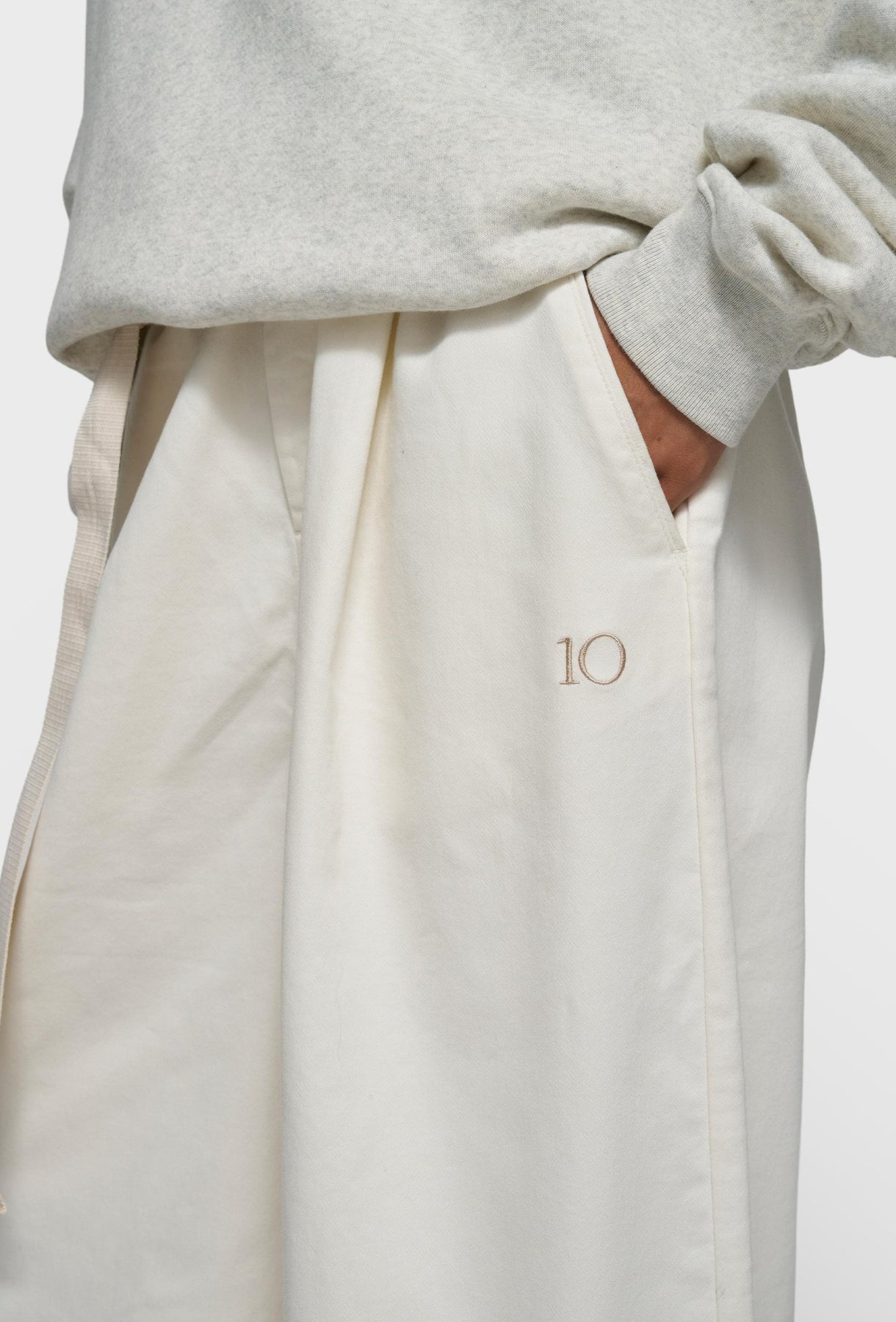 Nowoczesne spodnie o szerokim kroju wide leg, które łączą wygodę noszenia z dopracowaną, minimalistyczną estetyką. Wykonane z miękkiej, gładkiej tkaniny w jasnym, neutralnym odcieniu, zapewniają swobodę ruchów i komfort przez cały dzień. Elastyczna talia została uzupełniona regulowanym paskiem z metalowym kółkiem, który pozwala na indywidualne dopasowanie oraz nadaje całości subtelnie użytkowy charakter. Luźne, szerokie nogawki pięknie układają się w ruchu, podkreślając lekkość sylwetki. Spodnie posiadają praktyczne kieszenie boczne oraz tylną kieszeń, a delikatny haft z logo na nogawce stanowi dyskretny detal brandingowy. Idealne do nowoczesnych stylizacji casualowych i miejskich – świetnie komponują się zarówno z prostą bluzą, jak i dopasowanym topem czy swetrem.