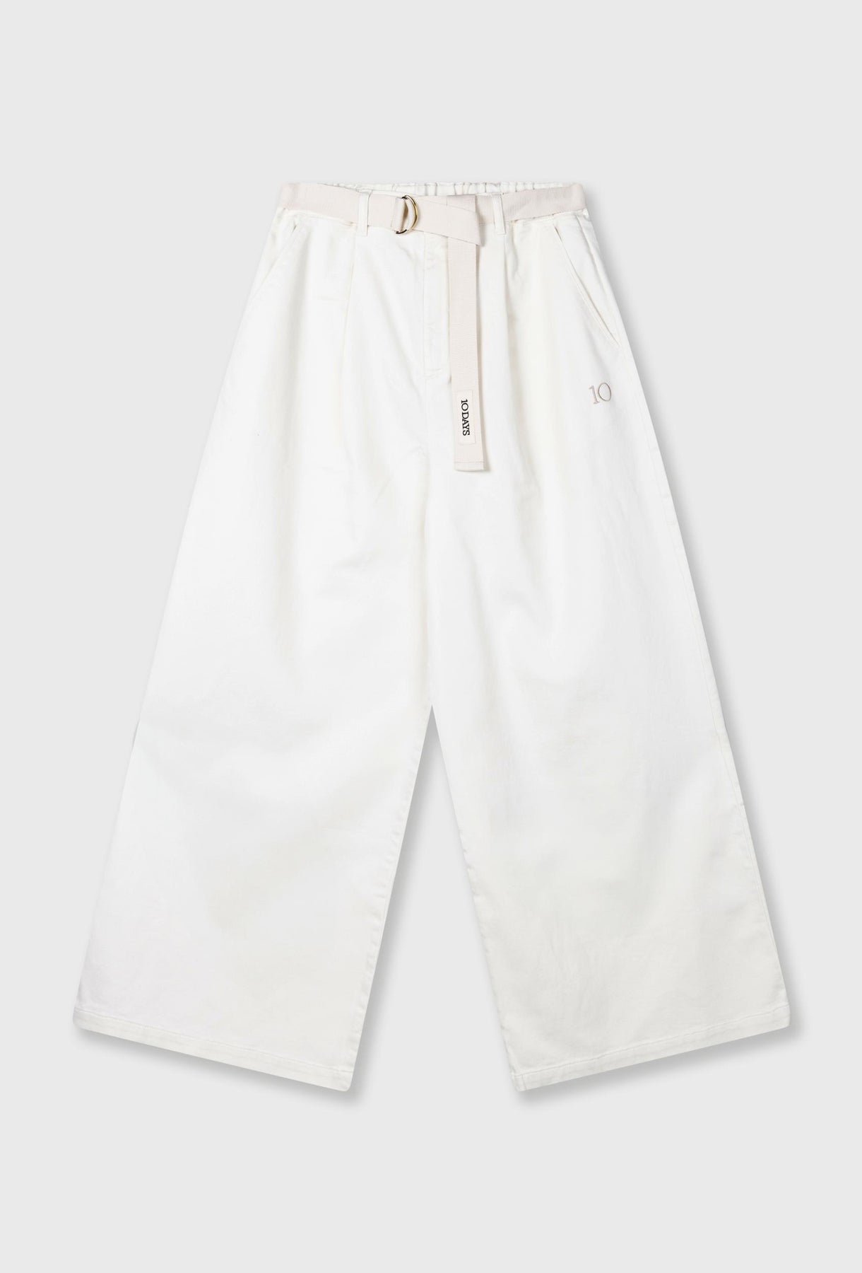 Spodnie wide leg z paskiem i minimalistycznym haftem